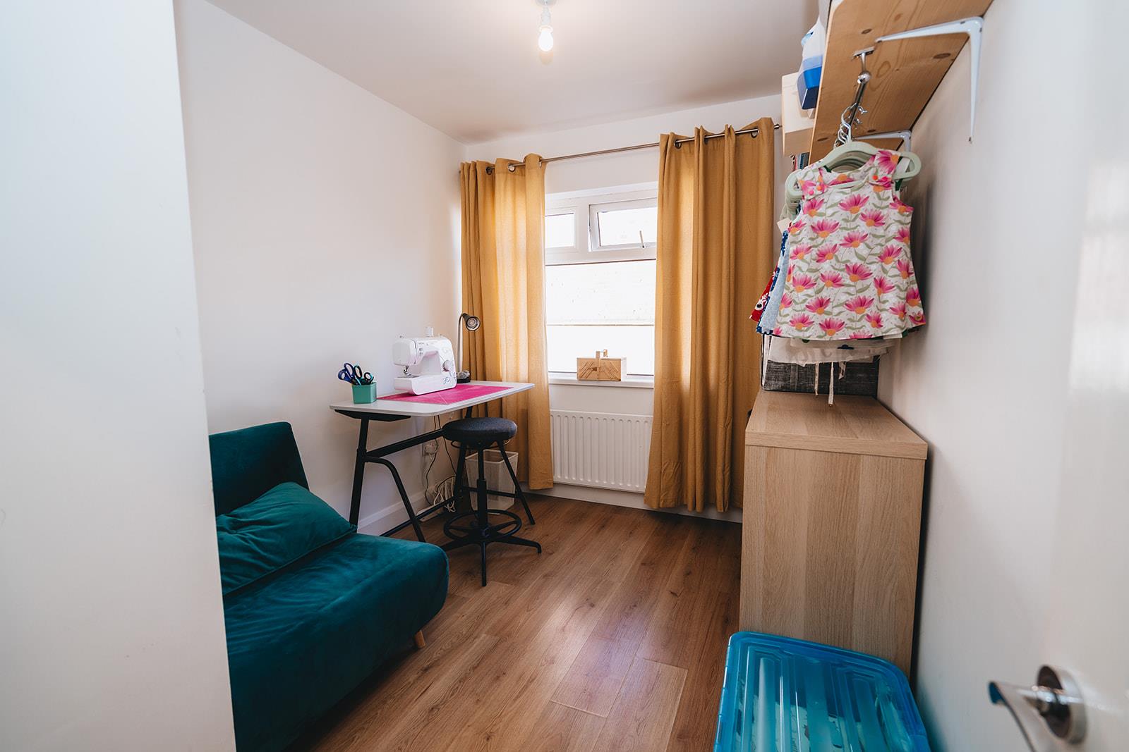 A double room with an aspect to the rear garden with dimmer switch and wood laminate flooring.