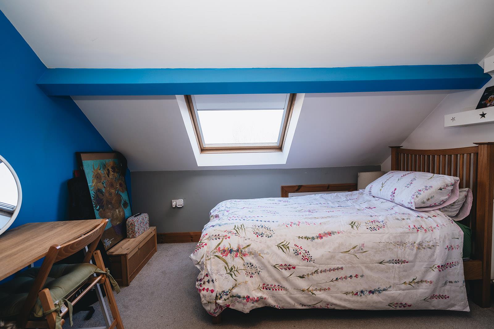 Another double room with Velux window and walk-in wardrobe.