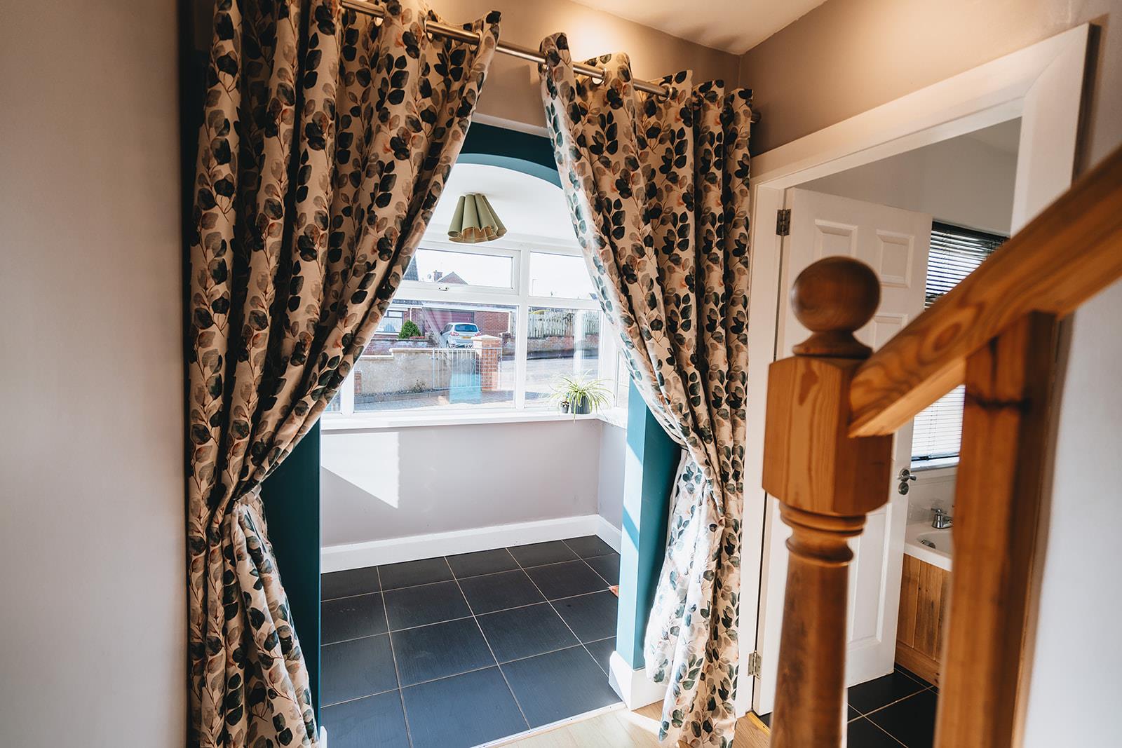 A uPVC double glazed entrance door leads to the entrance porch with tiled floor and archway which leads to the reception hall with wood laminate flooring, telephone point and built in hotpress. Open tread staircase to the first floor.