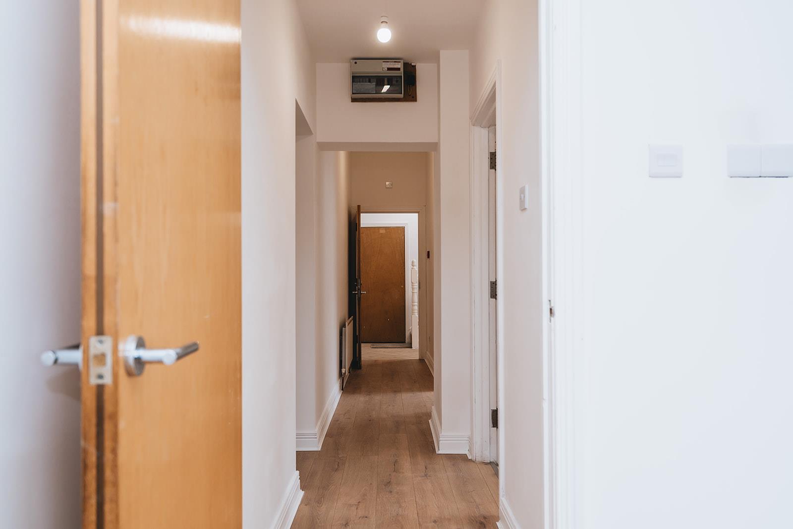 A composite front door leads to the reception hall providing access to all four apartments in the block.
