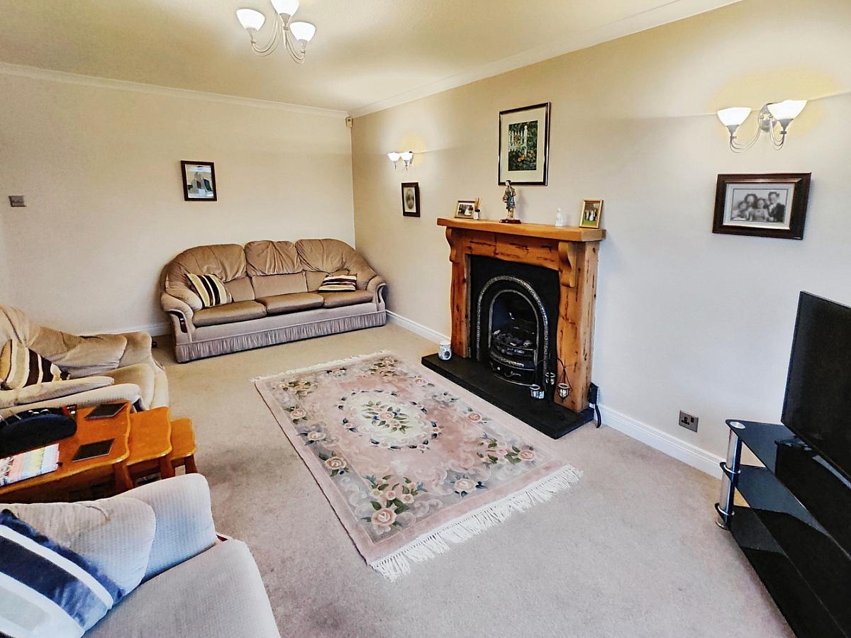 With feature surround fireplace, TV point and patio doors leading to rear.