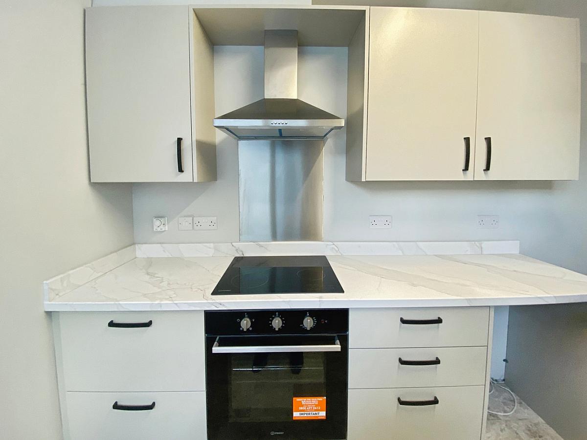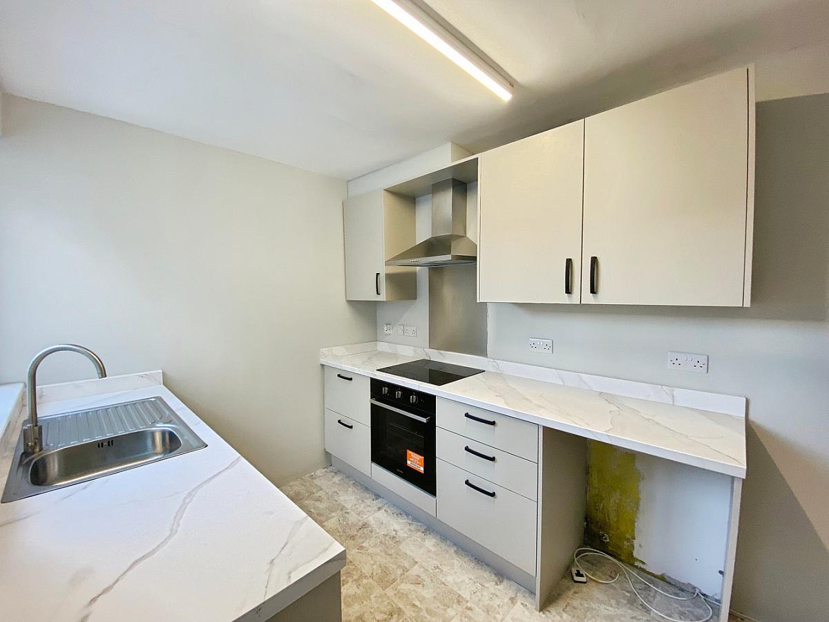 With range of eye & low level units, stainless steel sink unit with mixer tap, integrated electric "Indesit" hob & oven with built in extractor and plumbed for dishwasher.