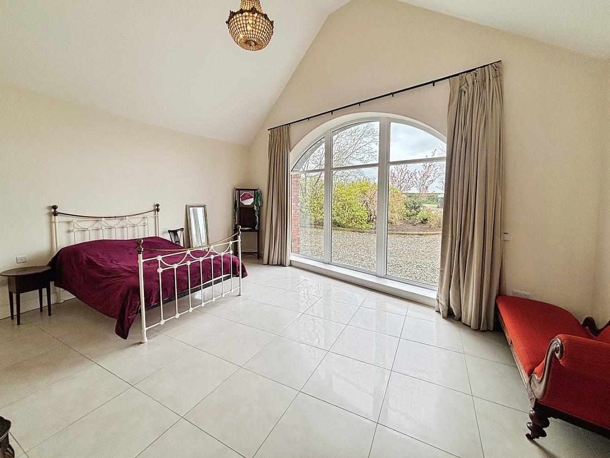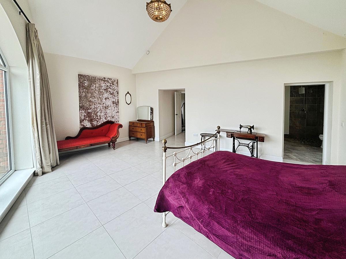 With tiled floor, feature arched window and walk-in wet room (c. 75.3 sq ft) comprising fully tiled mains shower with drencher head and tiled surround, wash hand basin, WC, tiled floor and extractor fan.