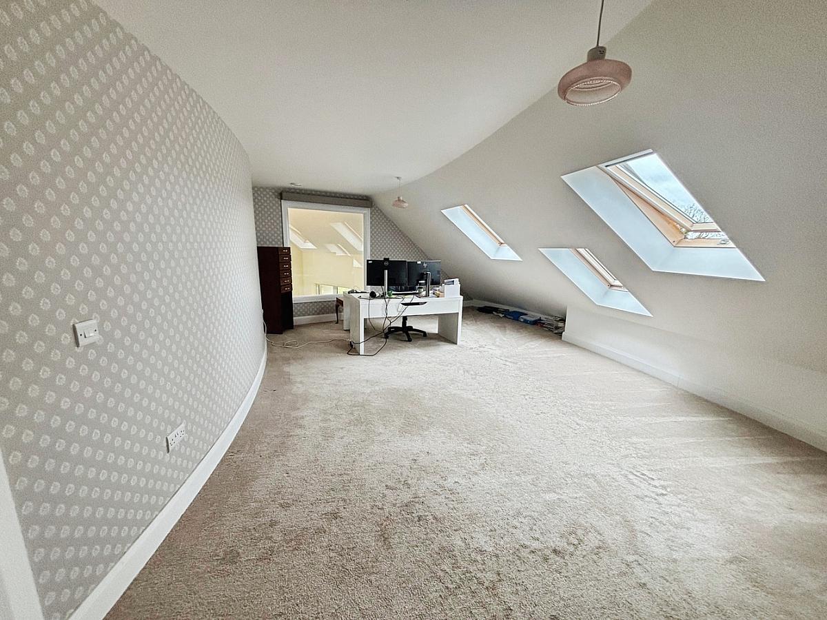 Internally, the property provides bright, spacious, and versatile family accommodation, enhanced by feature cathedral-style ceilings across the ground floor, flooding the living spaces with natural light. The accommodation includes two and a half reception rooms and five well-proportioned bedrooms (2 with wetrooms and 2 benefiting from a Jack & Jill ensuite) as well as a family bathroom, perfectly suited to modern family living. Built to a high specification throughout, the home benefits from uPVC double glazing, soffits and fascia, a gas-fired underfloor heating system with three-zone control, and durable Bison slab flooring across all levels.