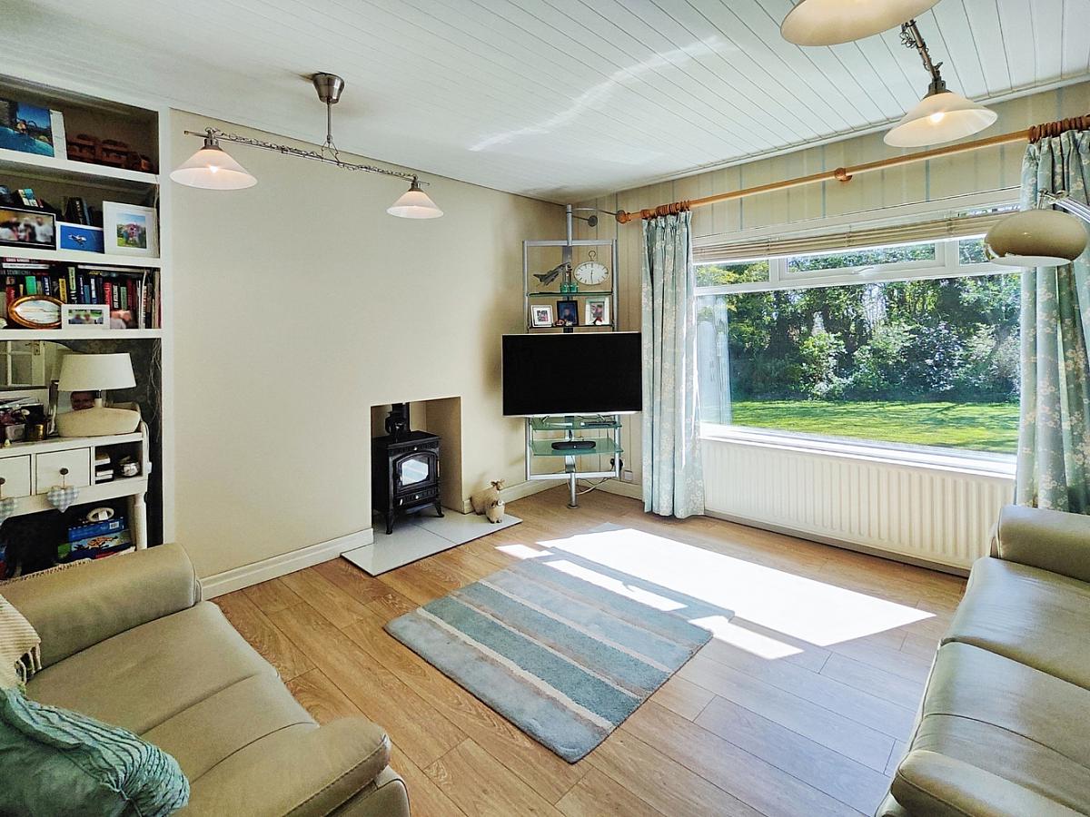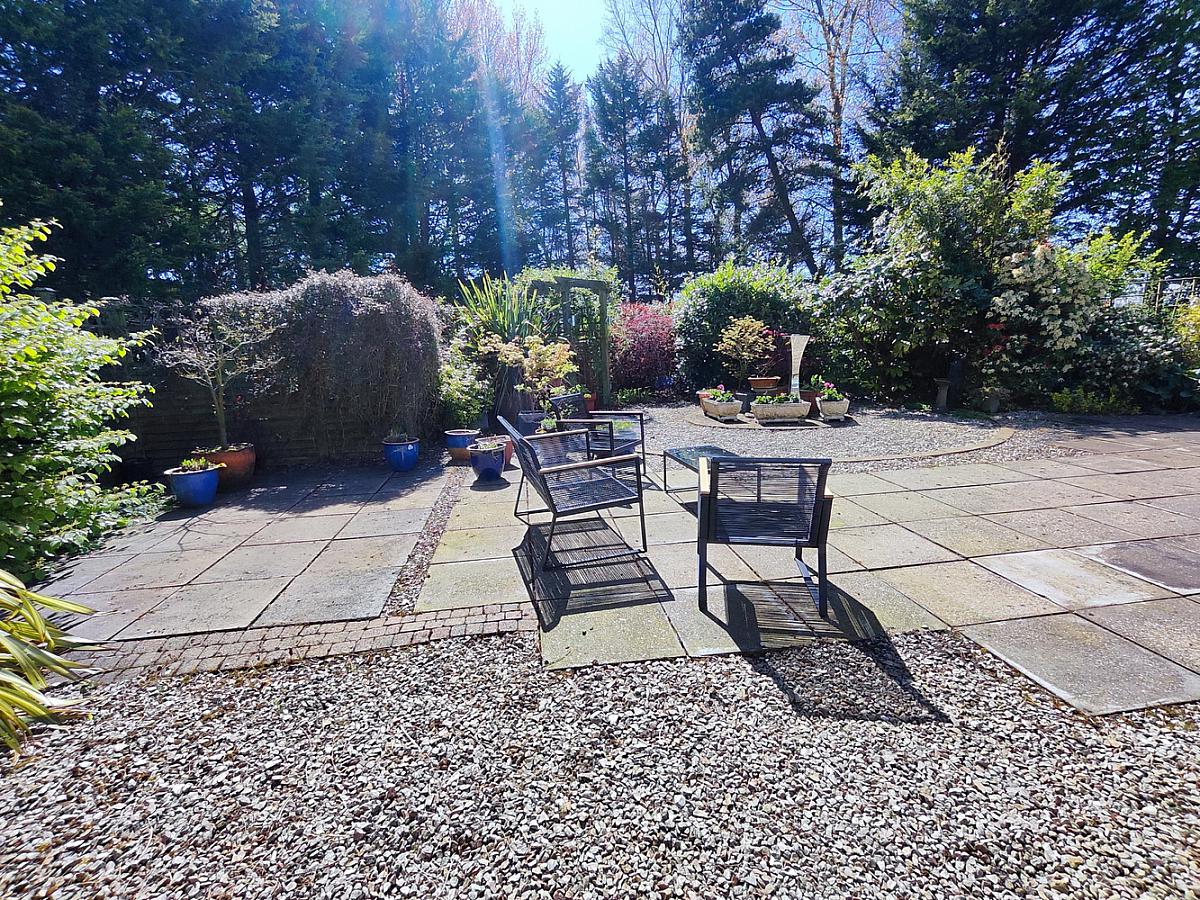 Property approached by driveway with parking area to front and side intersected by feature central flower bed . Carport to side. Spacious gardens to front and side laid in lawn, dotted with varius mature shrubs and bordered hedging. Spacious gardens to rear laid in lawn with feature paviour patio area, enclosed by mature trees.