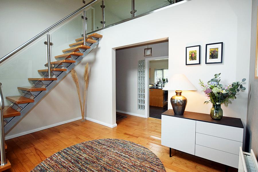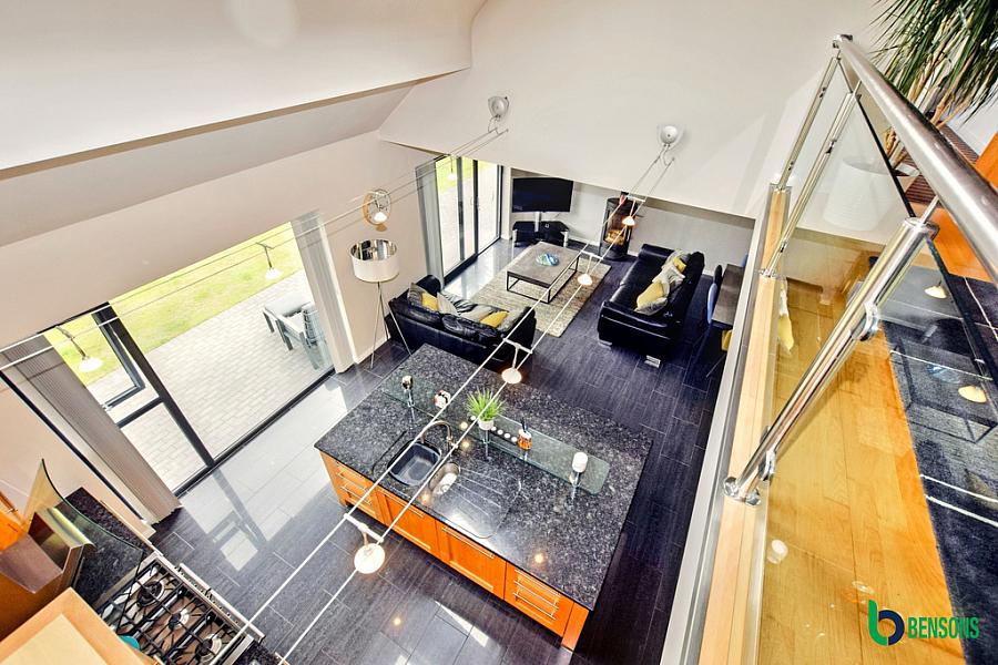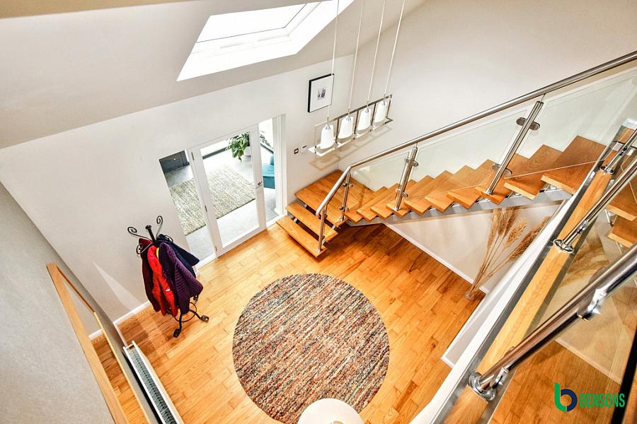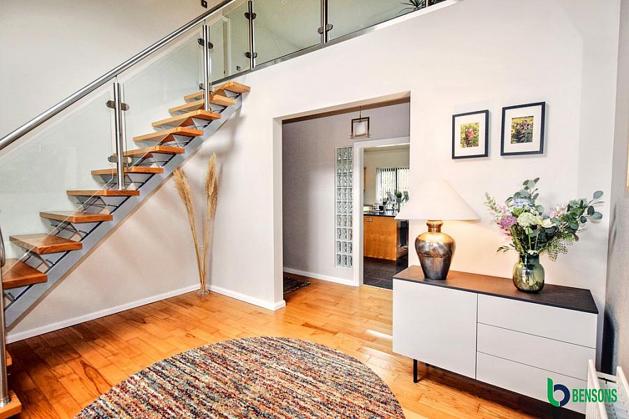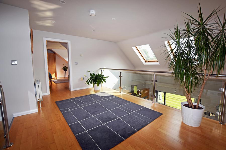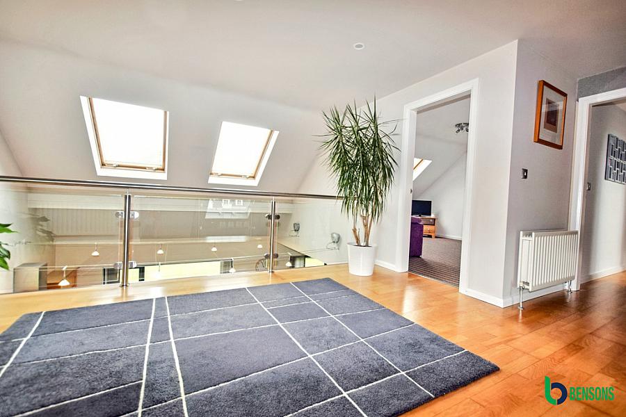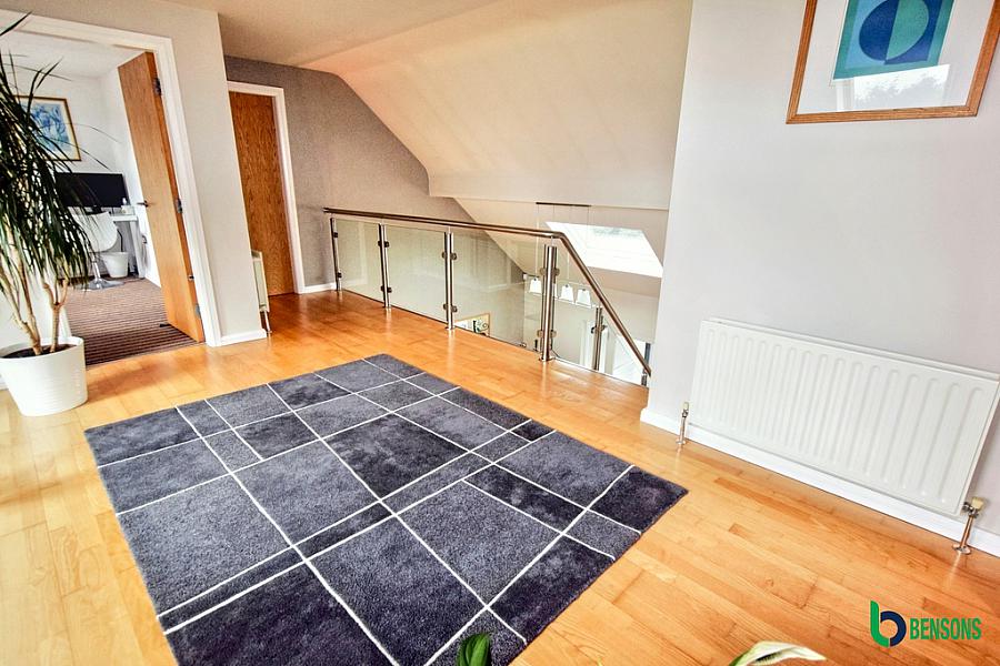 Spacious landing with with glass surround overlooking kitchen/family room and hallway.