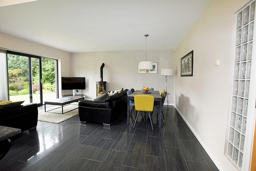 On entering you are welcomed into a spacious reception hall leading into open plan family room and modern kitchen with stunning views of the gardens. Main lounge has windows looking over both the front and rear garden. There is 4 bedrooms, 1 located on the ground floor and 3 on the first floor 2 of which are en-suite.