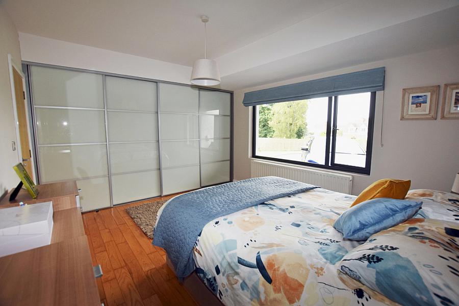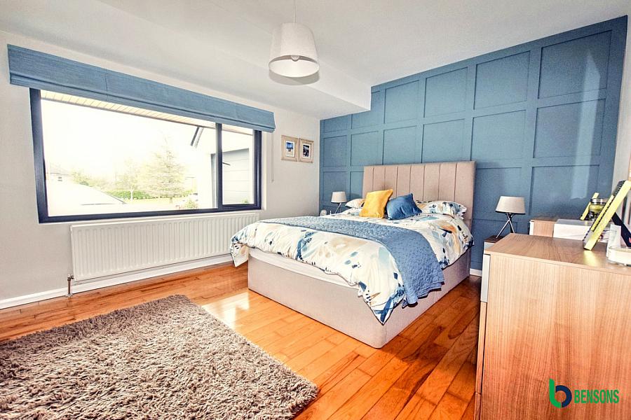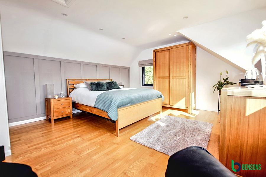 With built in sliderobes leading to walk in dressing area, feature panelled walls and wooden flooring.