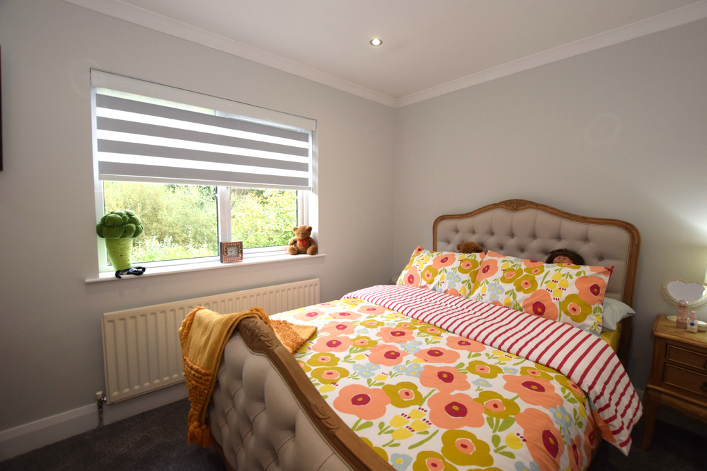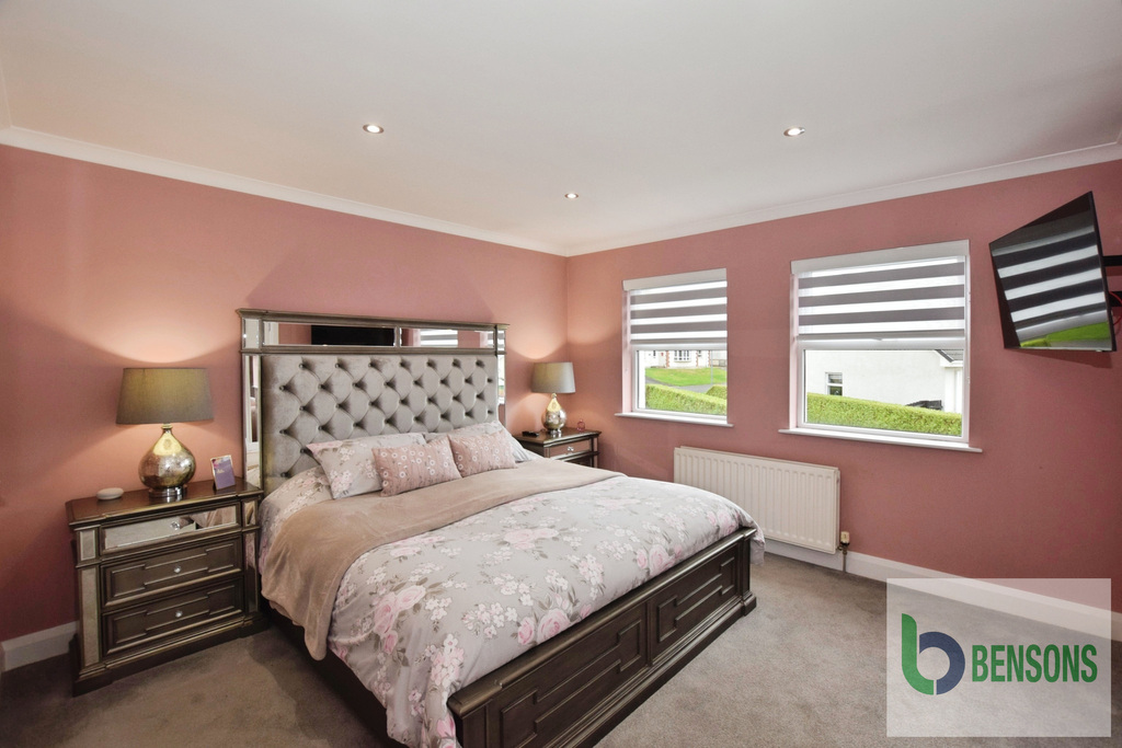 With coved ceiling, recessed ceiling lights, sockets with USB, built in wardrobes with LED lighting . Access into bedroom 1.