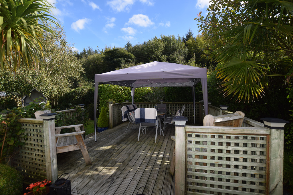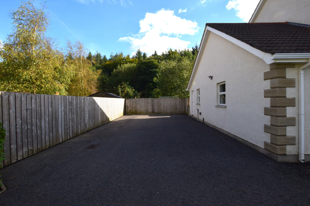 Property approached by asphalt driveway with ample parking. Front garden laid in lawn enclosed by mature hedging. To the side store, hot & cold water taps security light and outside power point. Fully enclosed garden to rear with paved patio and decked area with outside power points, security light, mature hedging, shrubs and water feature. Enclosed yard to rear with greenhouse, outside power point and access into Somerset Forest.
