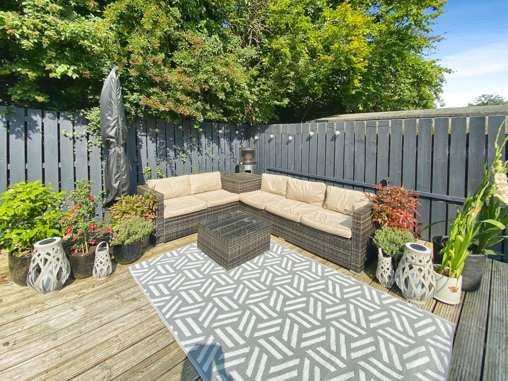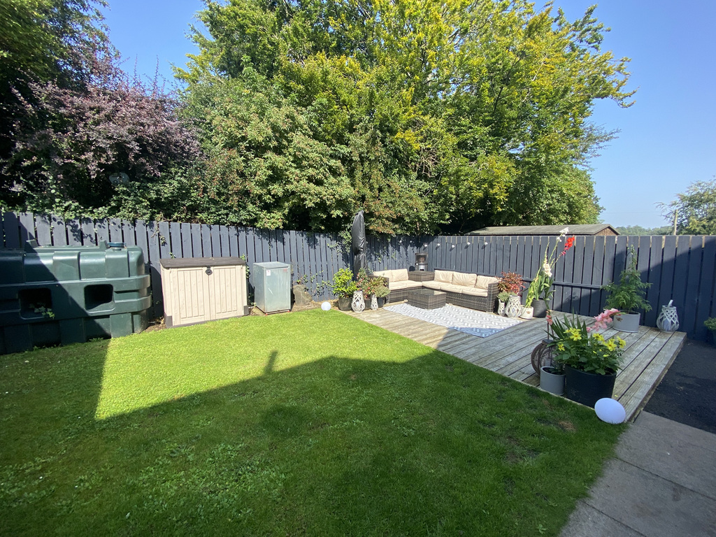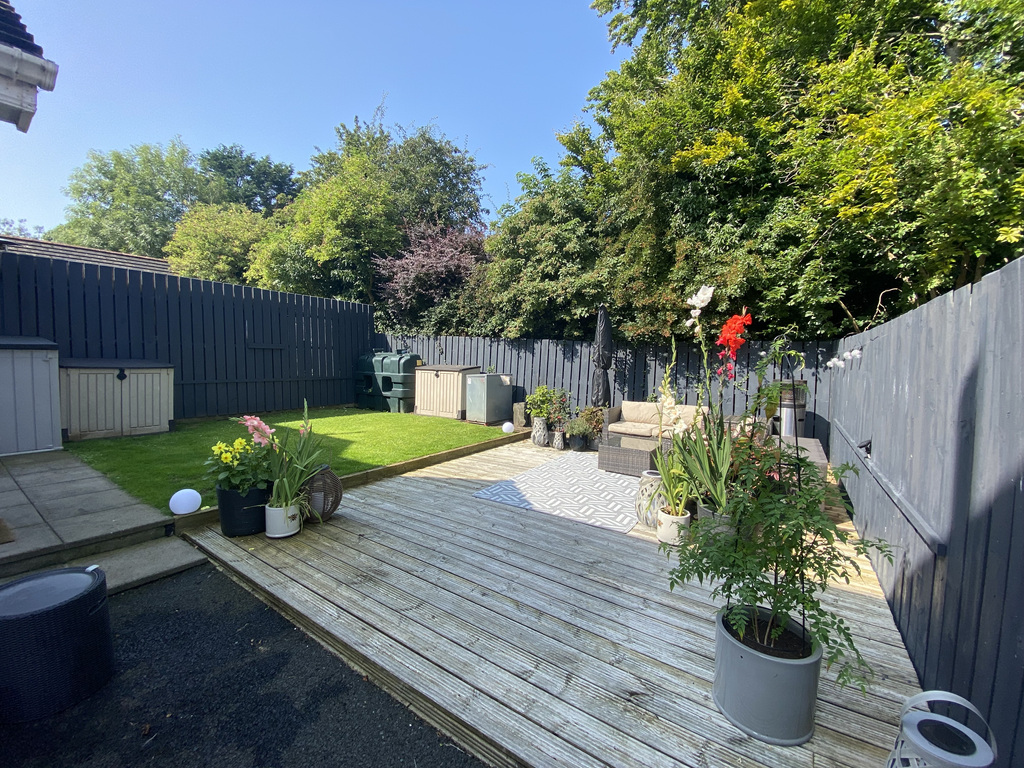 Tarmac driveway and parking area to front. Garden to rear fully enclosed by fencing, laid in lawn with decked and paved patio area's. Outside light, tap and power point.
