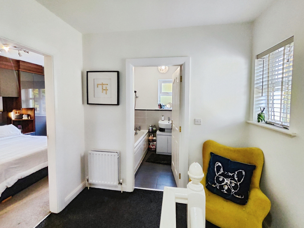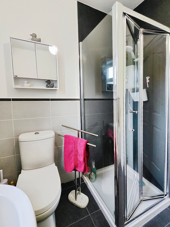With fully fitted bedroom furniture comprising wardrobes, overhead storage, beside lockers and dressing table. En-suite comprising PVC panelled walk in shower cubicle, wc, wash hand basin, extractor fan and tiled floor.