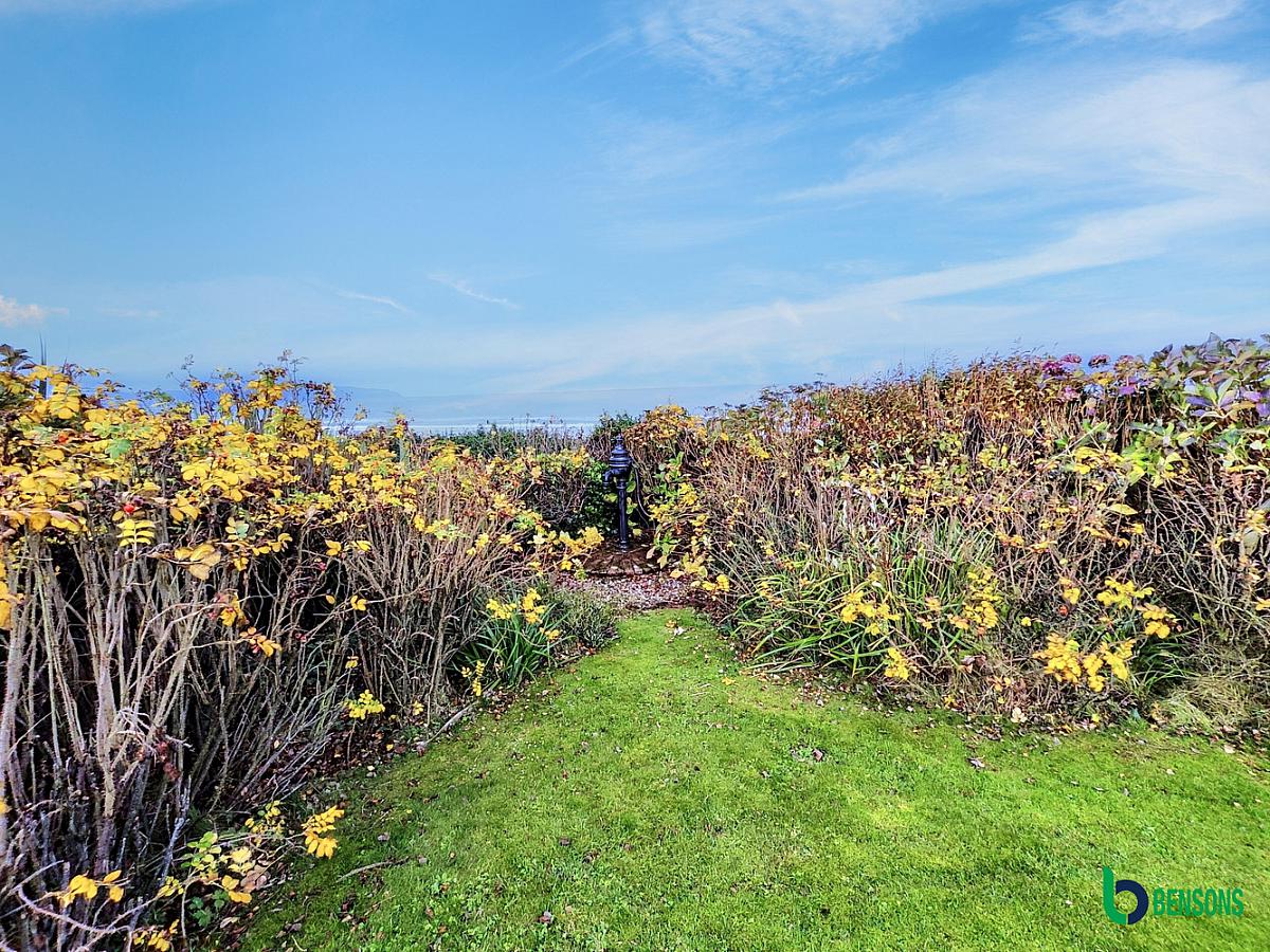 Property is approached by paviour brick driveway that is fully enclosed by feature natural black basalt stone wall. Concrete walkway leading through to rear garden. Garden to rear laid out in sweeping lawn with shrubs, herbaceous flower beds, rockeries and south facing patio. Cowtail water pump (decorative only) with stoned & paved area. Garden has private access onto Castlerock beach. All is enclosed by natural black basalt stone wall.