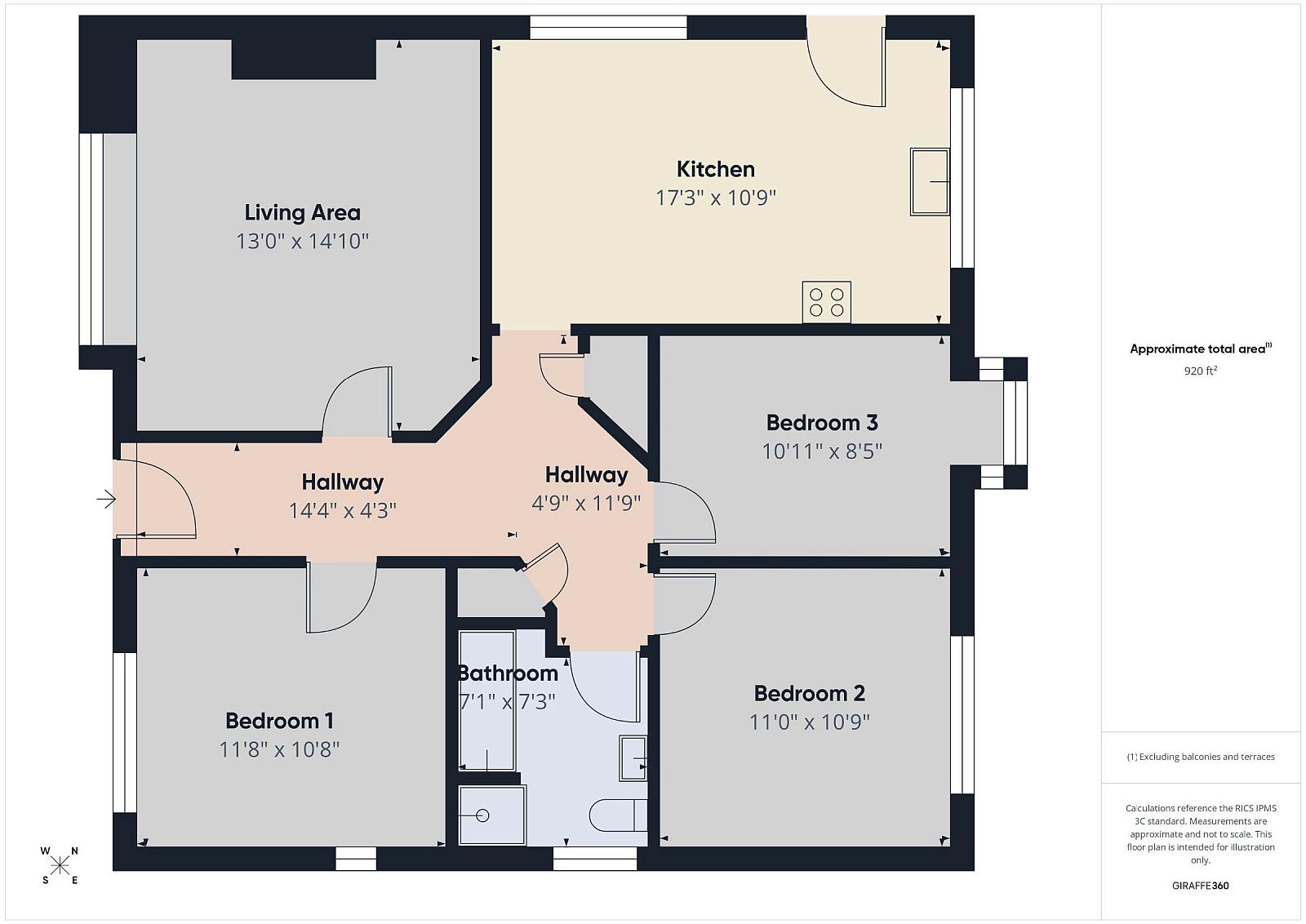 Entrance hall w: 4.37m x l: 1.3m (w: 14' 4" x l: 4' 3")