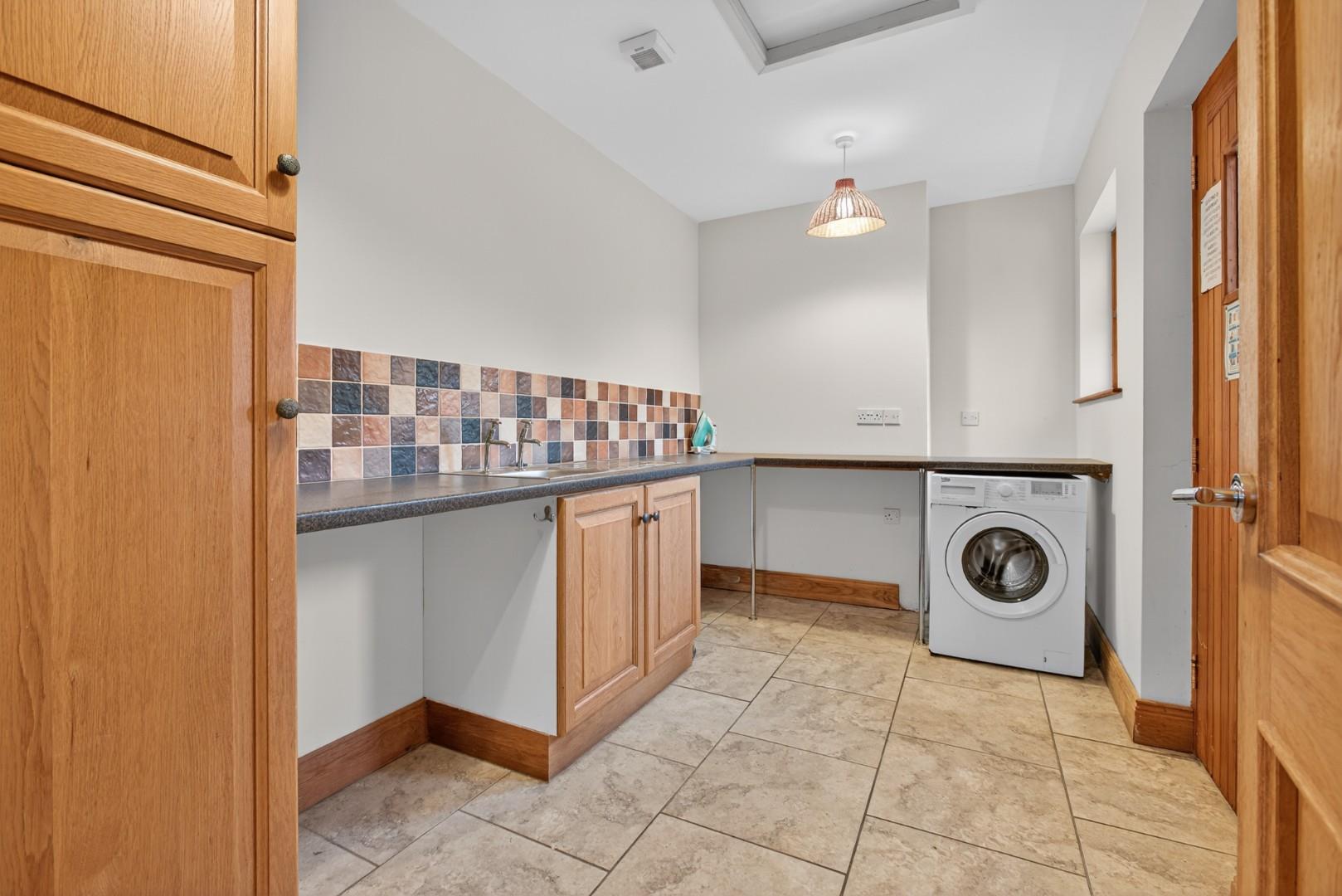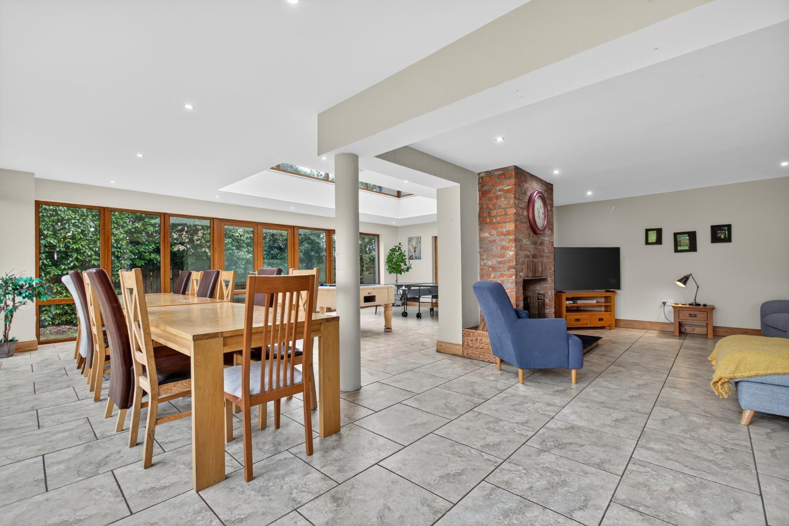 Extending to approximately 5,000 sq ft, this substantial residence features three reception rooms, a spacious open-plan kitchen/dining area fully fitted with integrated appliances, a large utility room, three generous ground floor bedrooms, and three bathrooms.