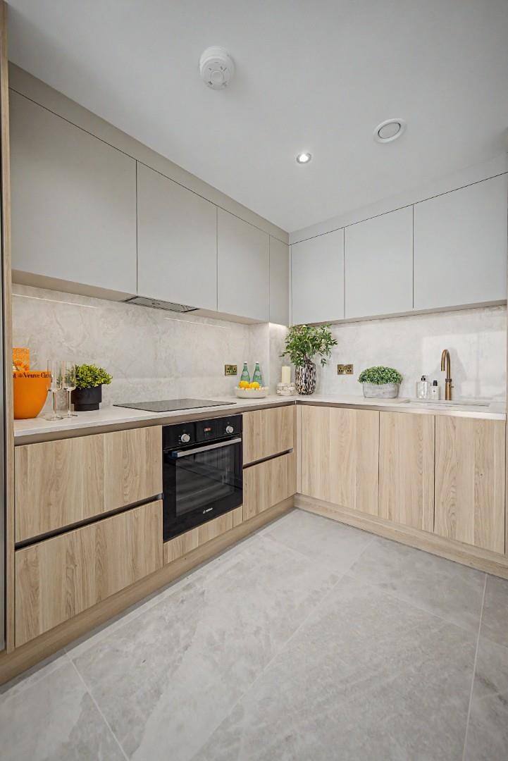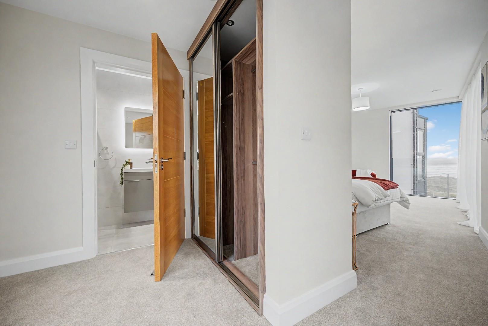 The apartment boasts two spacious bedrooms, including dressing room and master ensuite, and a bright, open plan living and dining area designed for modern living. A fully equipped designer kitchen with high end finishes and smart home features enhances both style and convenience. Thoughtful design ensures ample storage throughout