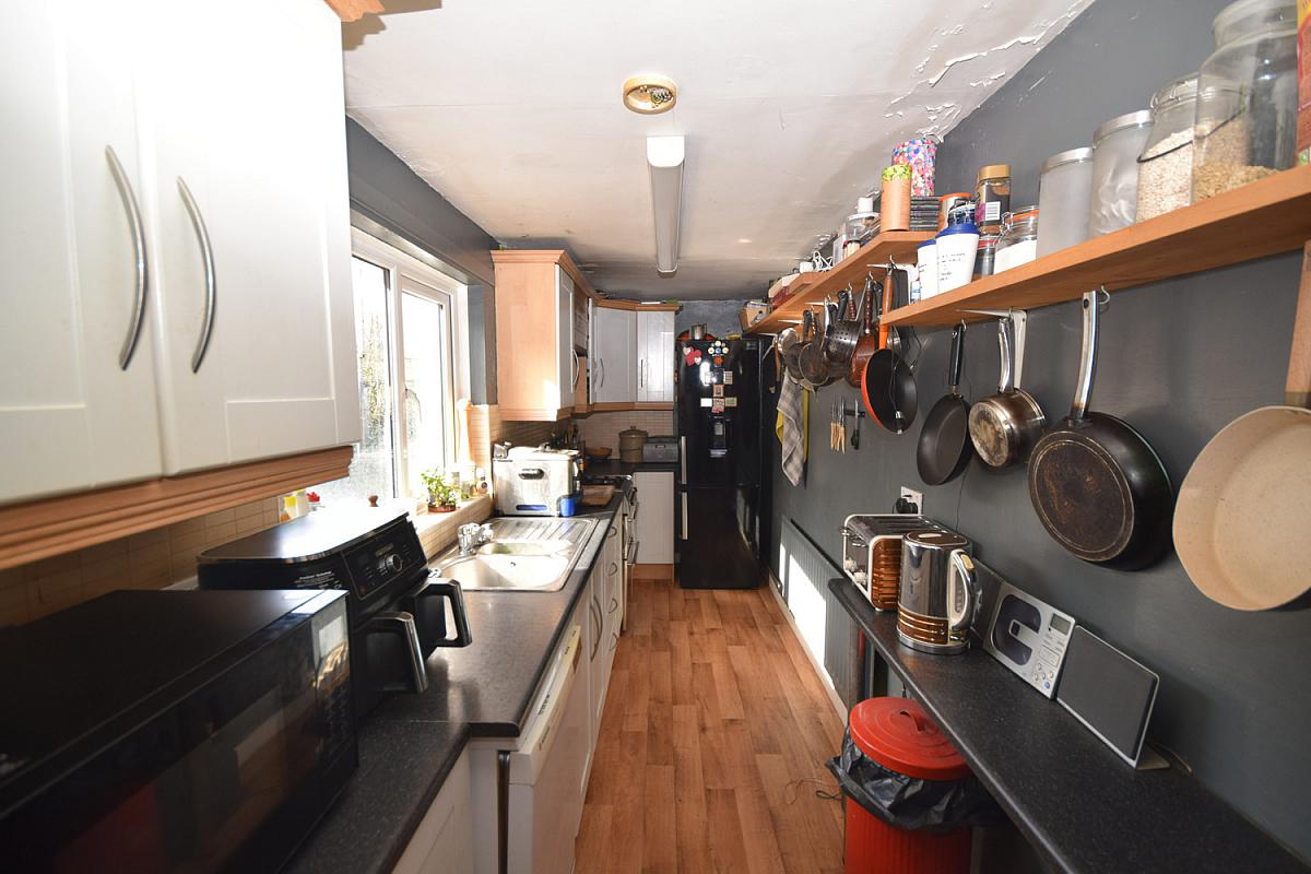 156 x 54 Offering a good range of fitted units and ample worktop space, complete with a stainless steel sink and wooden laminate flooring.