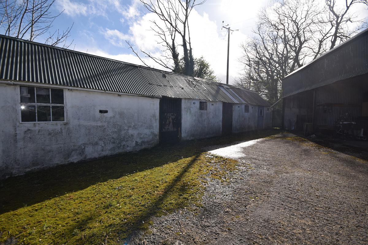 Extensive range of outbuildings, including stables, greenhouse, workshop areas, and