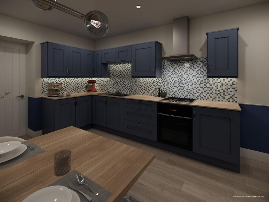 - Integrated appliances to include hob, oven, extractor and fridge freezer