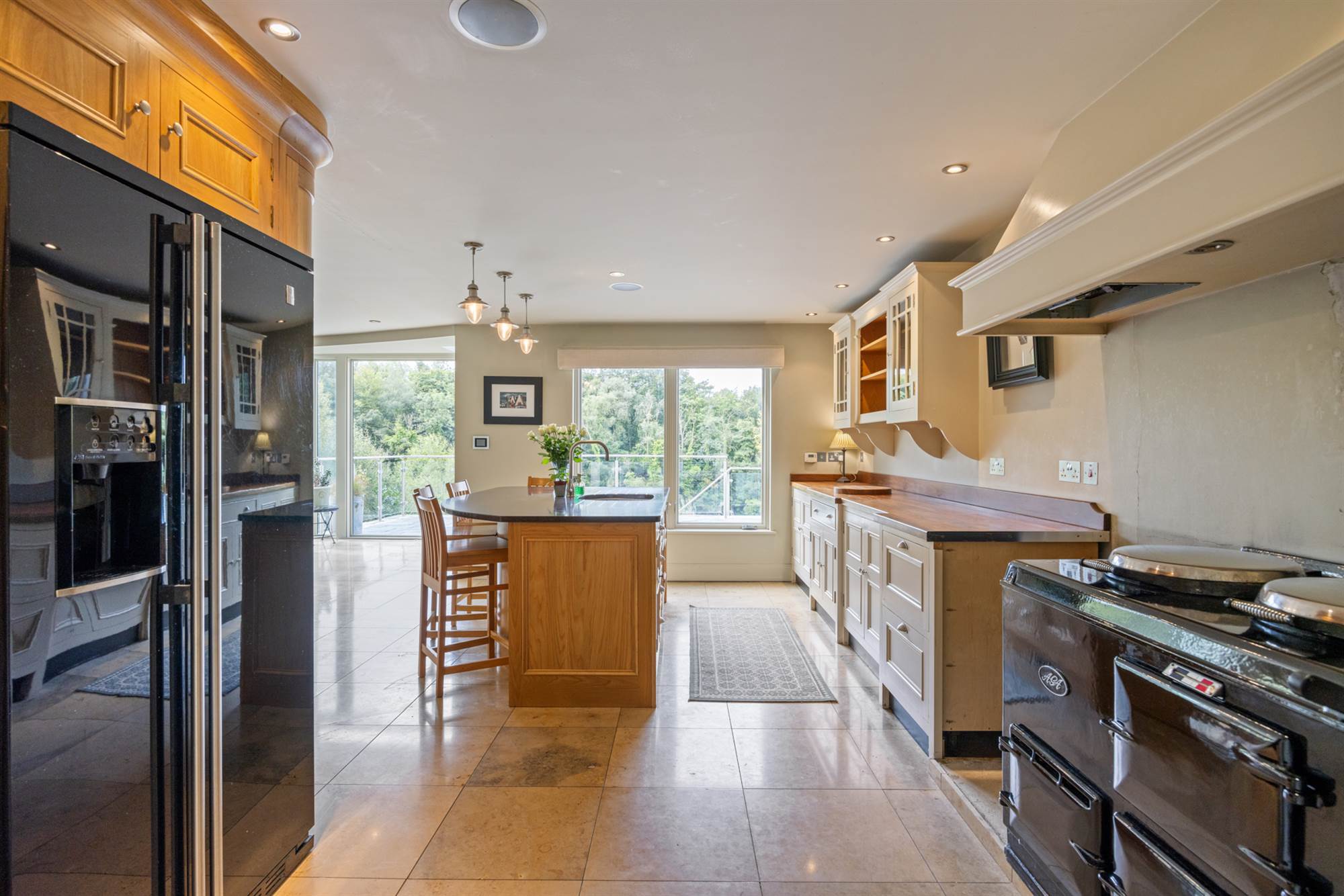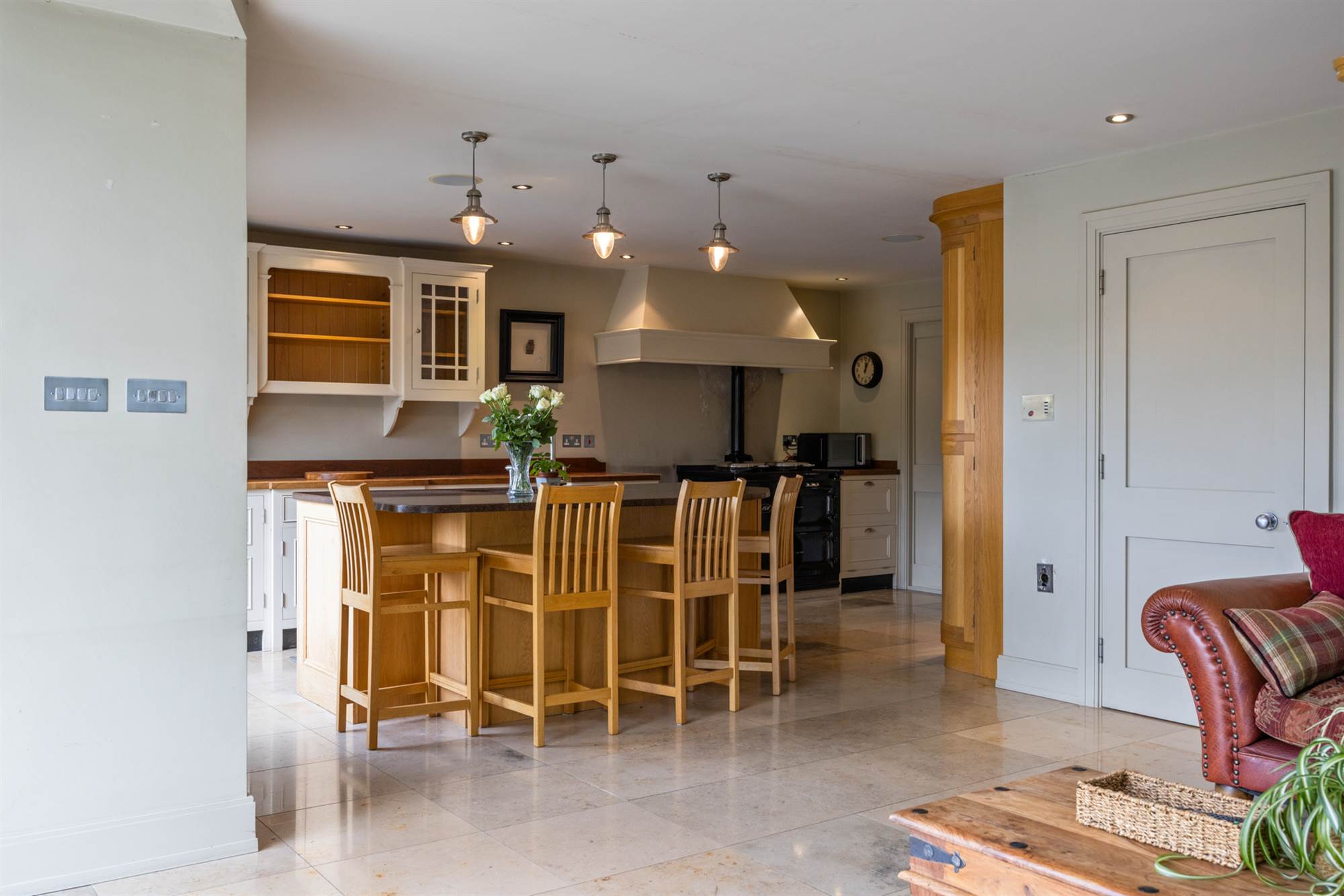 Kitchen - High and Low Level, Aga Range, Recess for Fridge Freezer, Central Island with inset sink, granite worktops, integrated dishwasher, marble flooring
