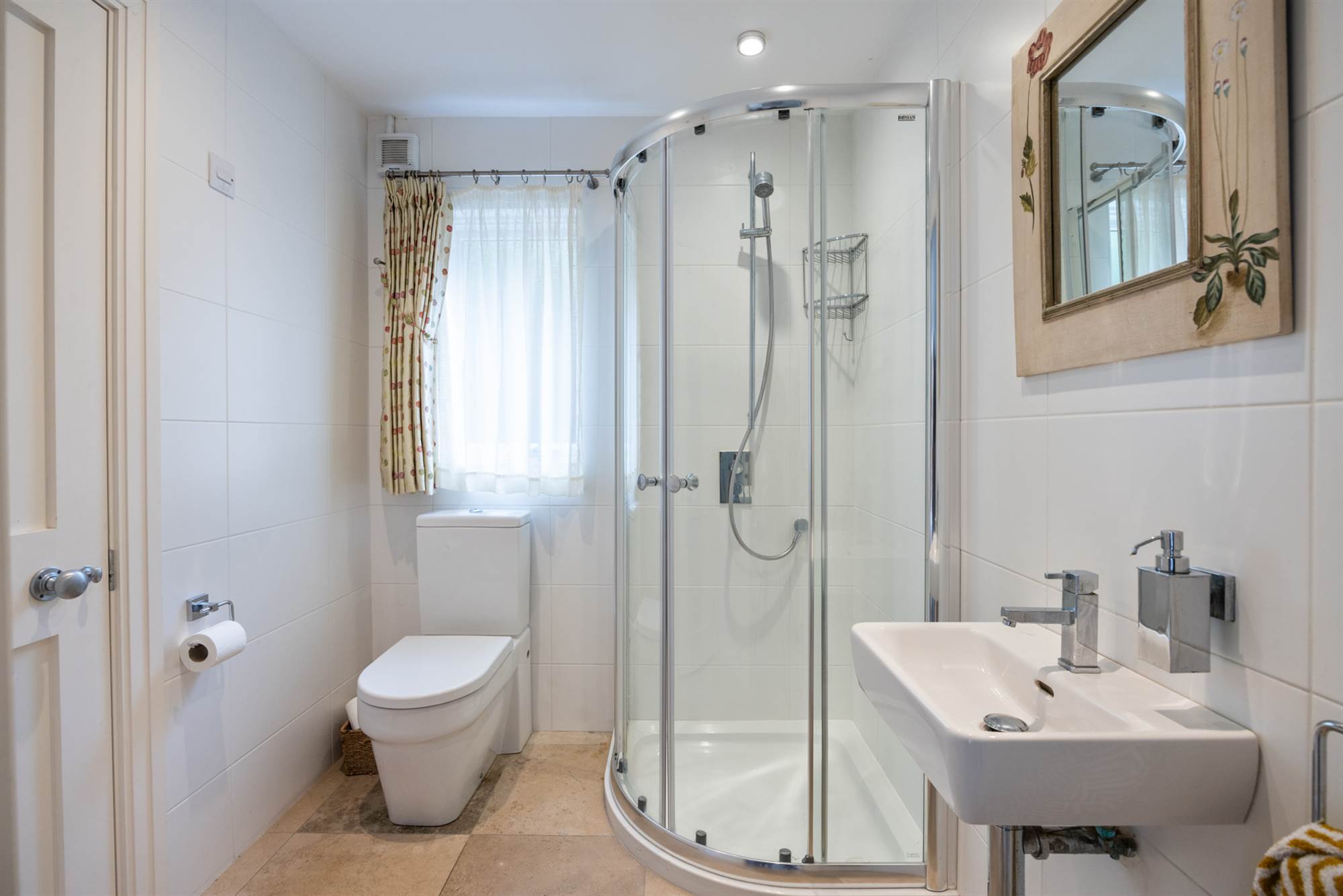 Fully Tiled Shower Enclosure, low flush WC, wash hand basin