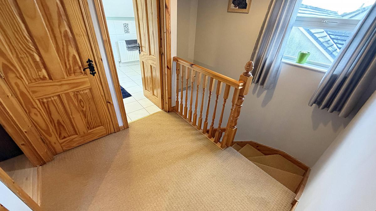 Carpeted hall and landing, access to attic, hot press and storage.