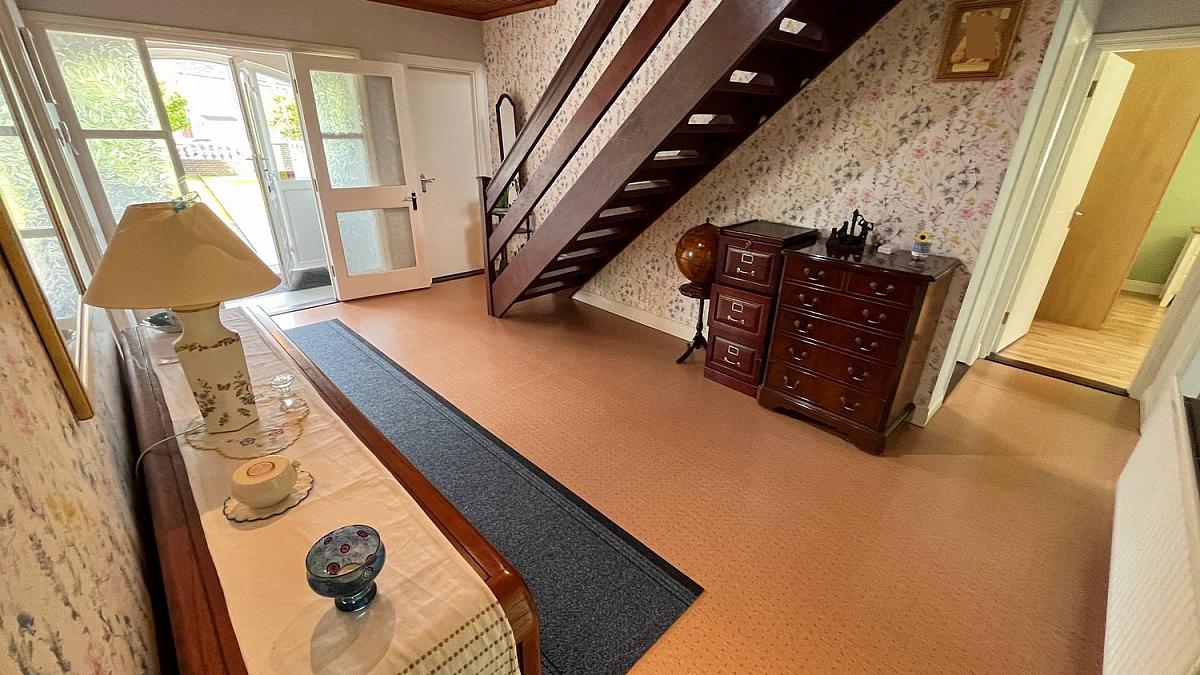 Tiled floor, access to and views over the rear garden.