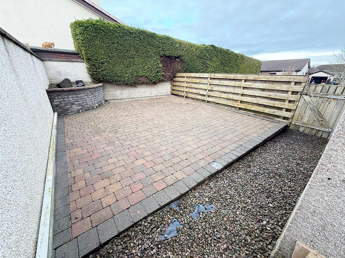 Garden to side with paved patio area.