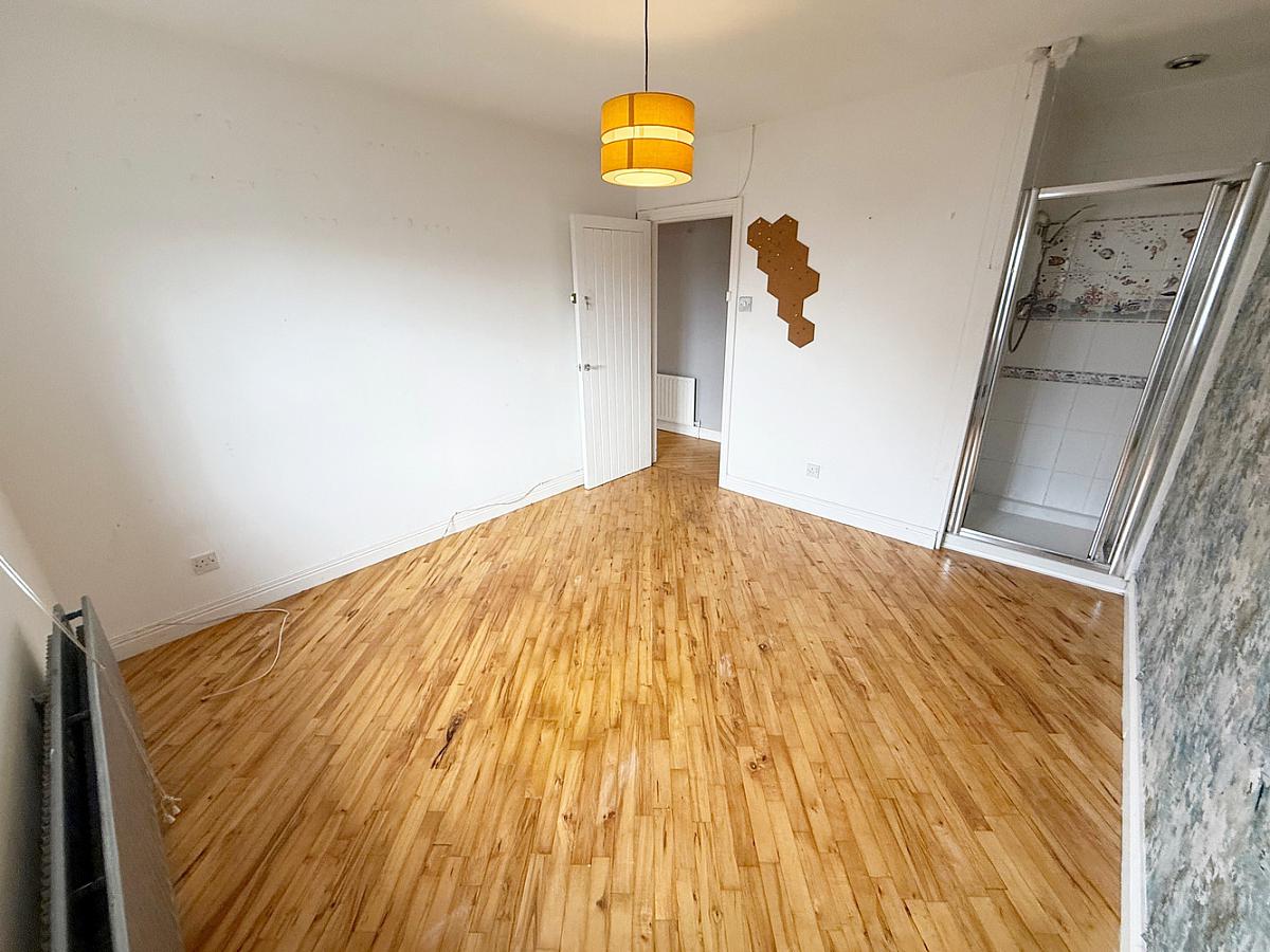 With solid wood floor. Tiled shower cubicle with electric shower.