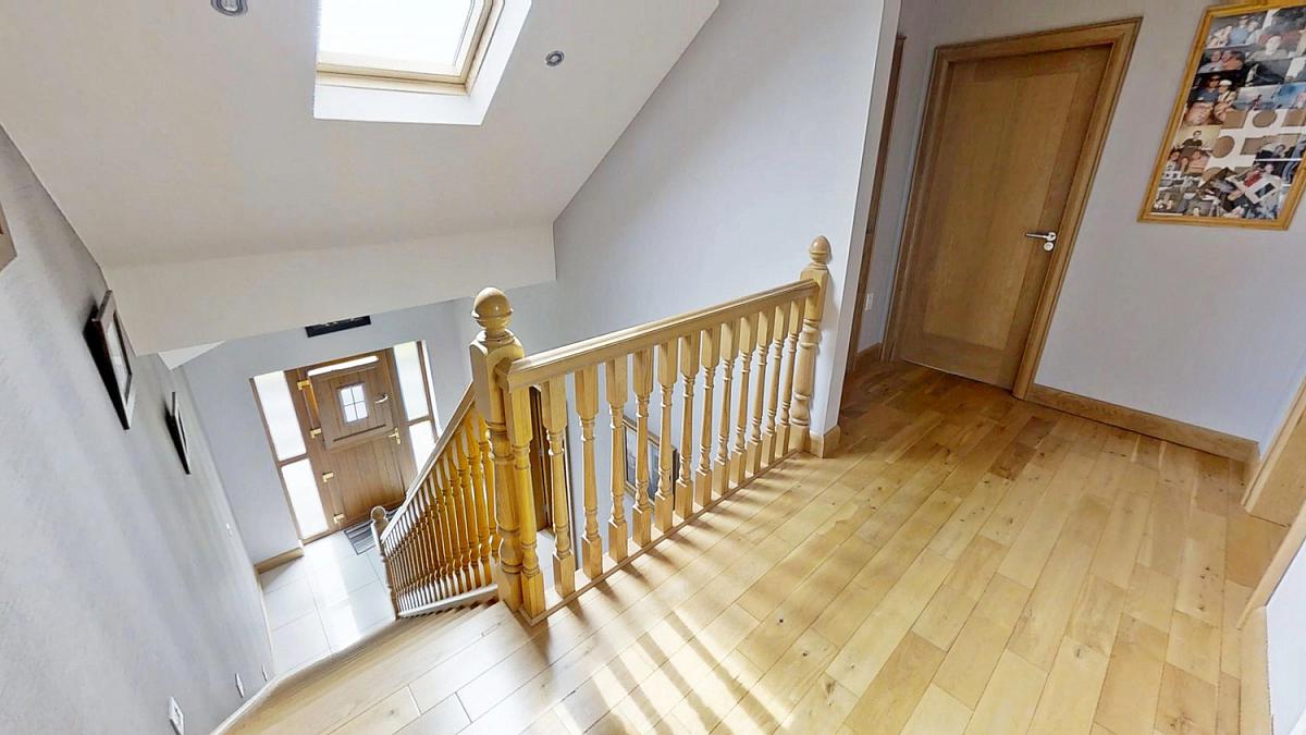 uPVC door, tiled floor, recessed lighting to ceiling and walls. Oak staircase and balustrade.