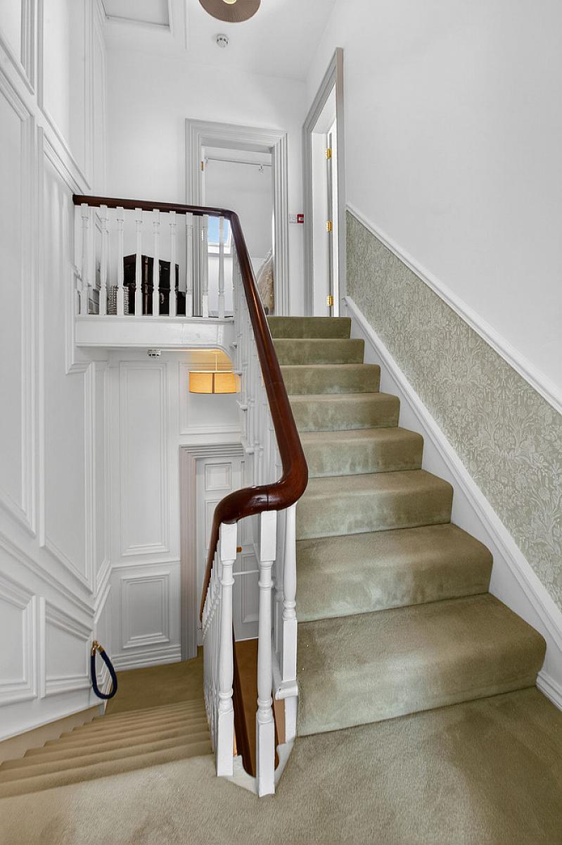 Carpeted stairs and landing.