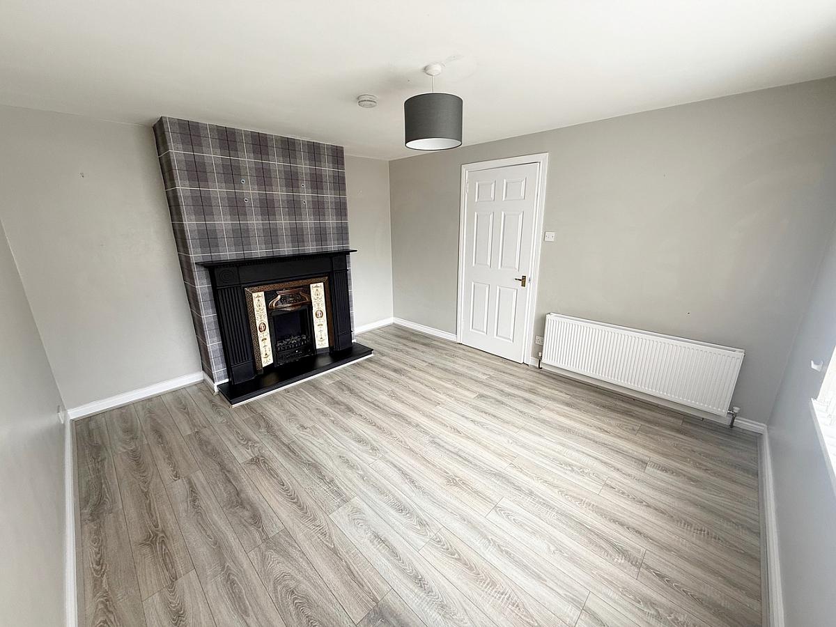 Laminate wood floor, wooden fireplace with electric feature fire and tiled hearth. TV point.