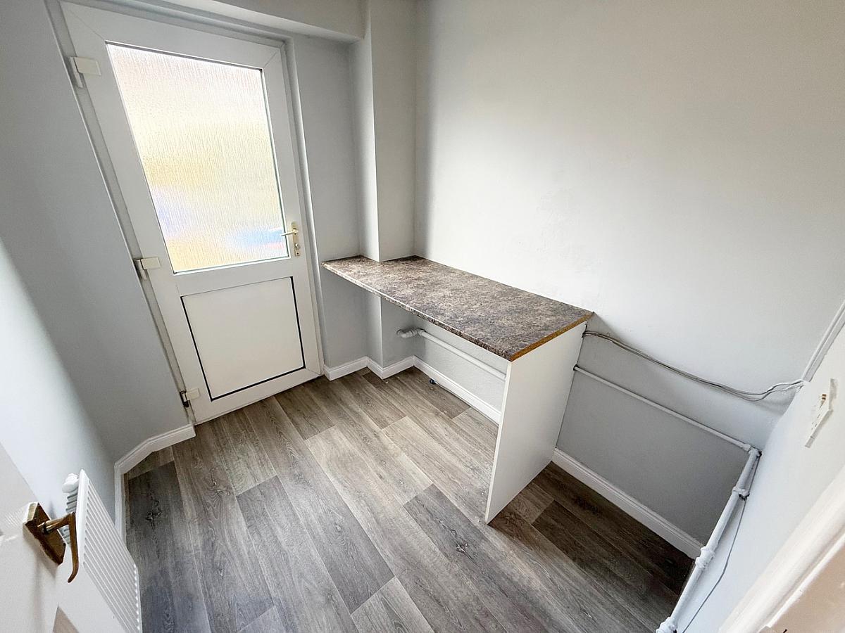 Space for washing machine, tumble dryer, and fridge freezer, Access to rear garden.