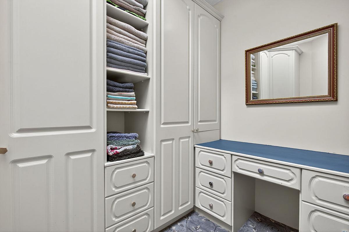 DRESSING ROOM - fitted wardrobes, desk, shelving and light well