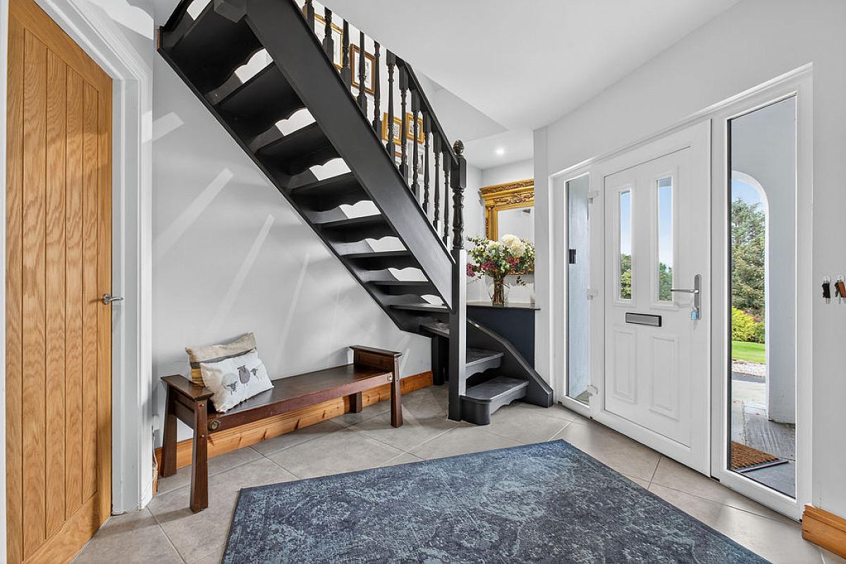 UPVC door, tiled floor, bespoke coat rack and boot store