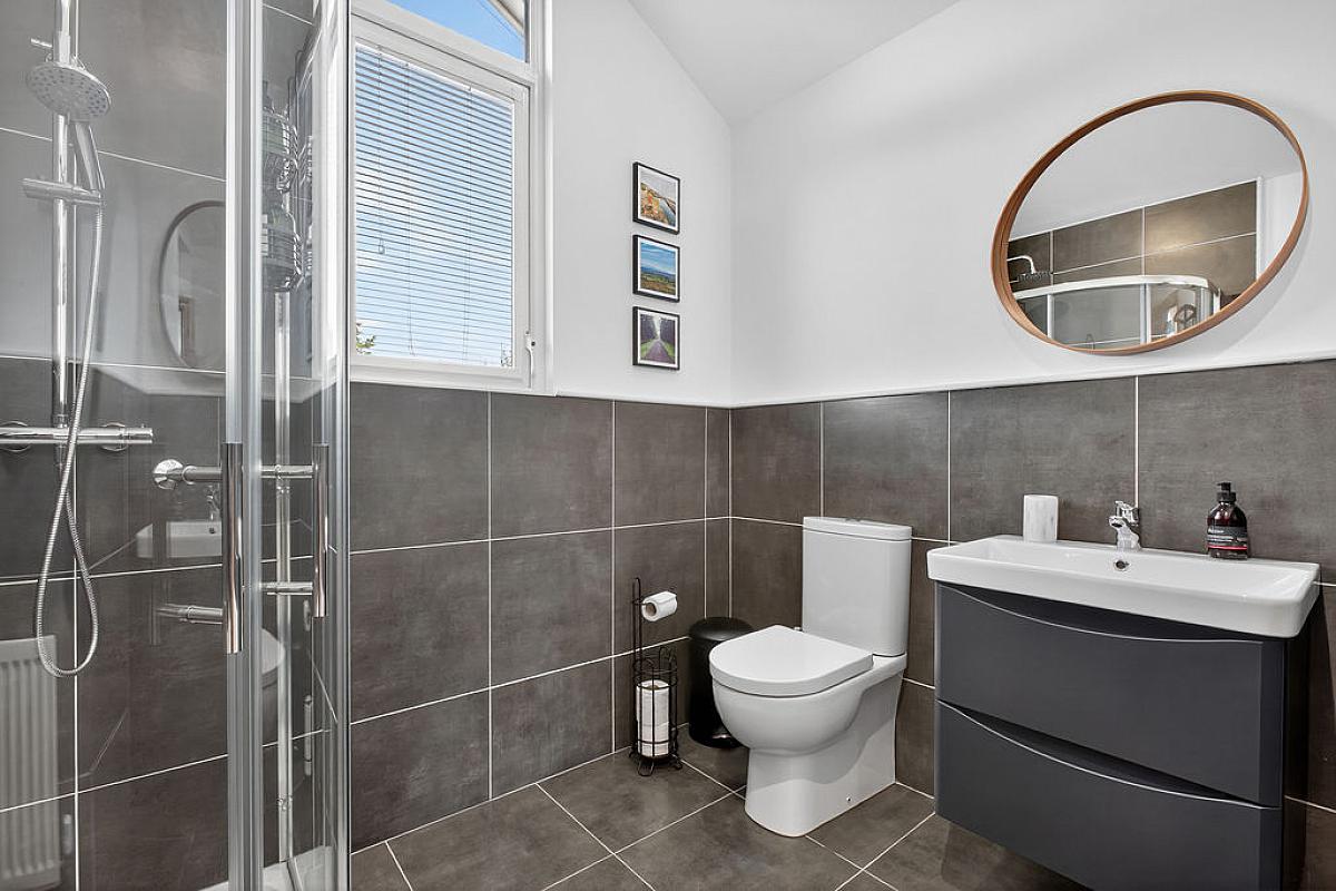 ENSUITE -vanity unit wash hand basin, low flush WC, shower cubicle with mains shower