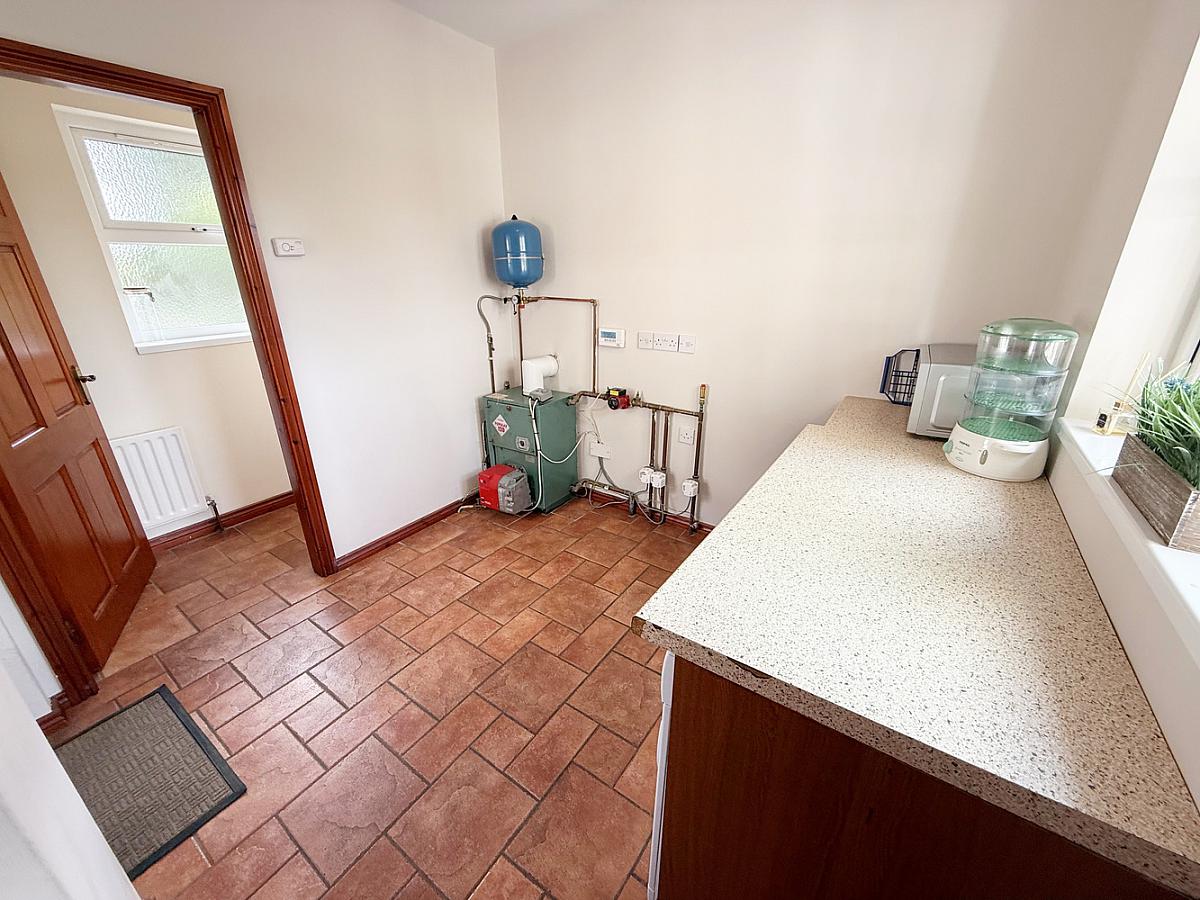 Plumbed for washing machine, space for tumble dryer and space for dishwasher. Oil fired boiler and access to rear to WC. Comprising, Tiled floor and low flush WC.