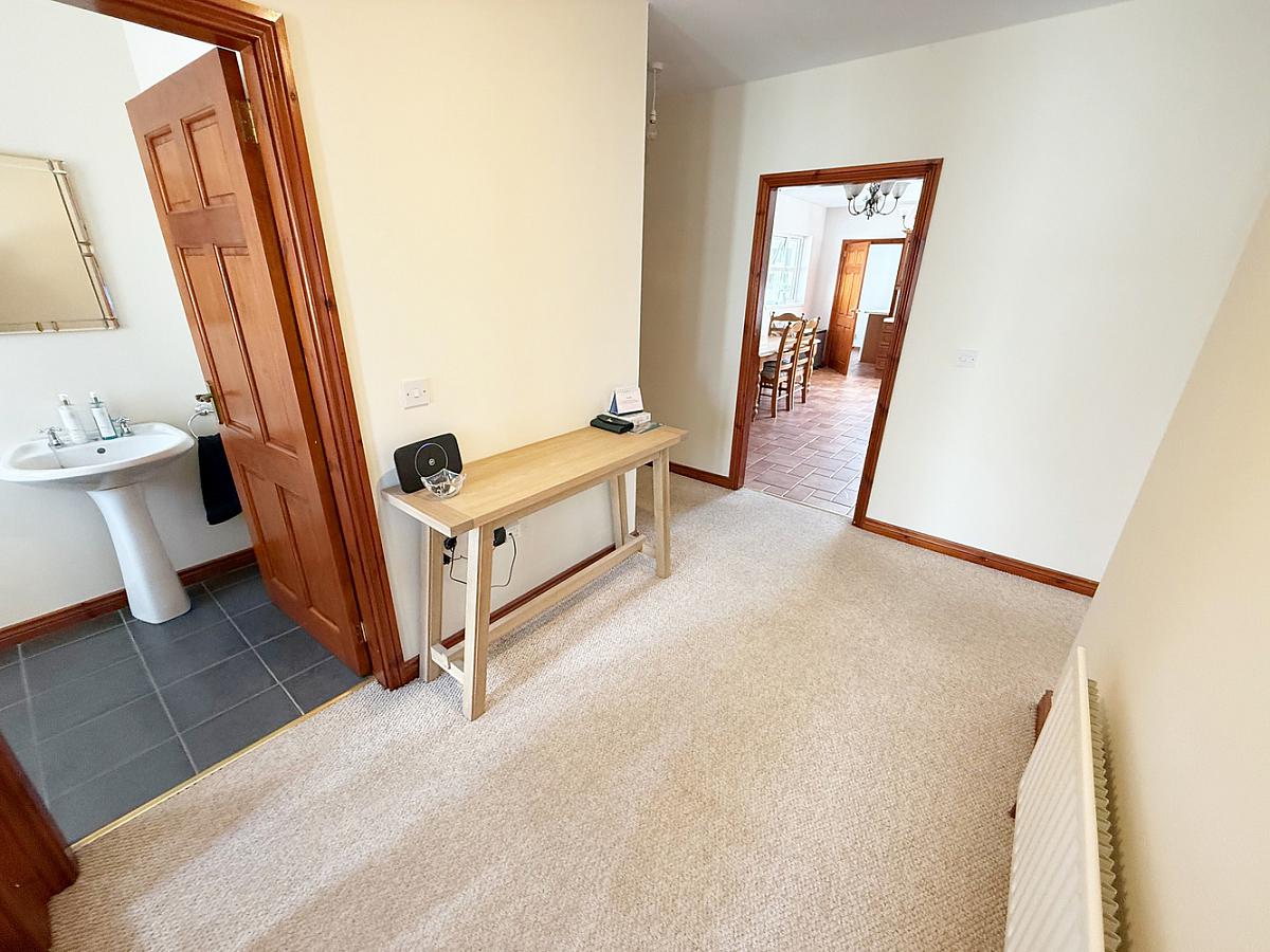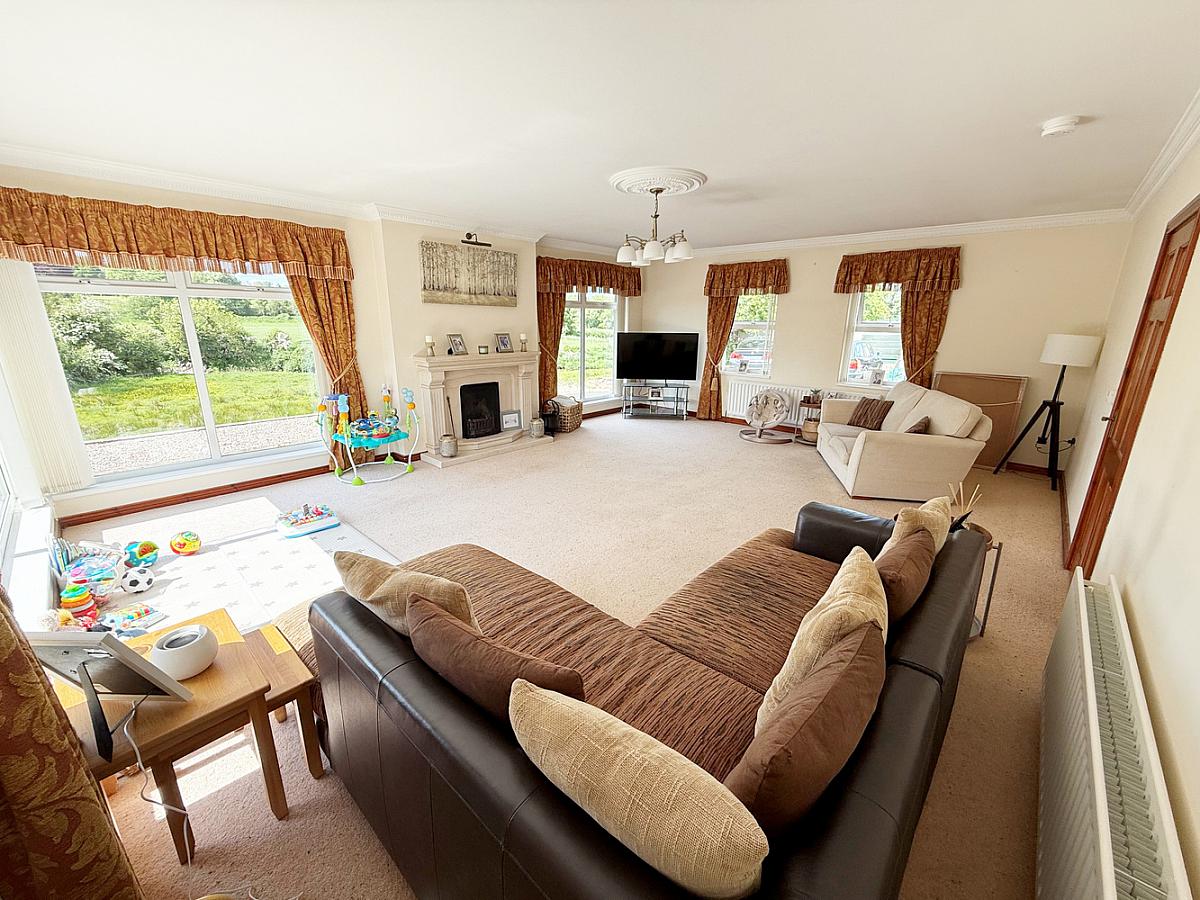 Open fire with sandstone fireplace and surround. Television point, cornicing and wall lights. Dual aspect with views over Agivey River.