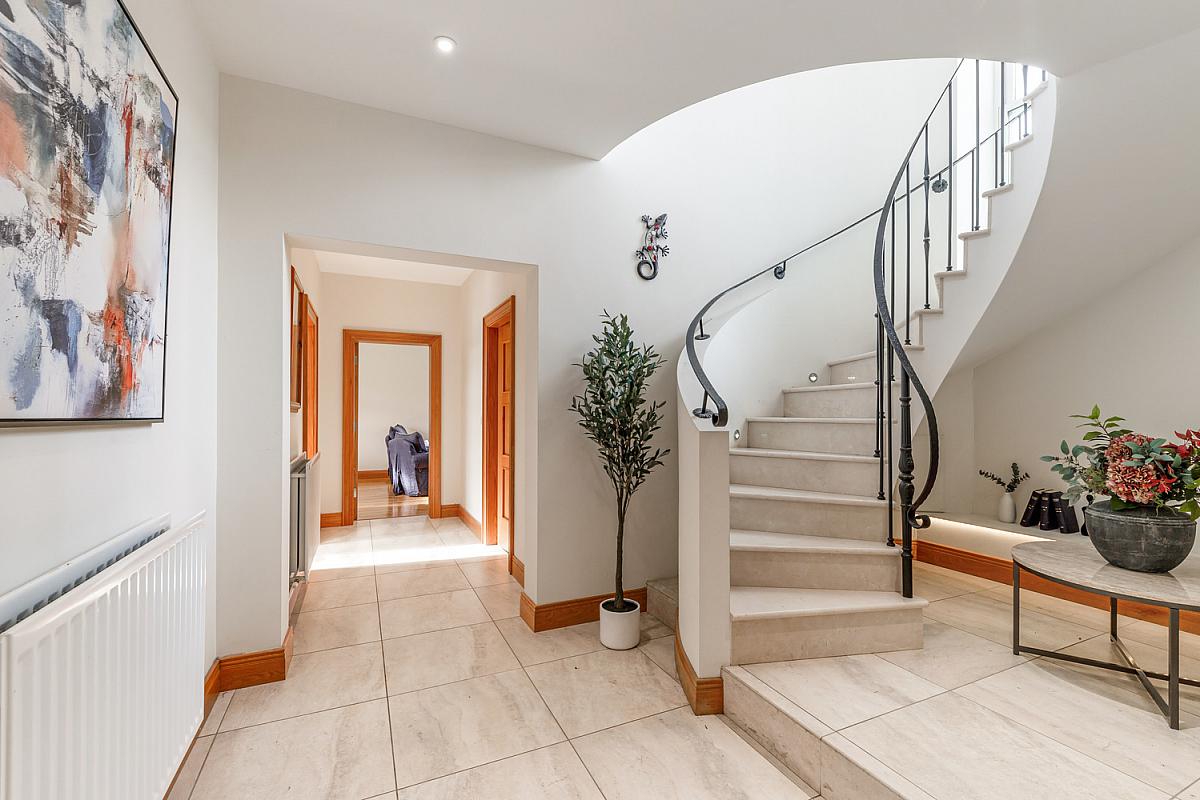 Attention to detail is evident everywhere, from solid oak joinery to its curved marble staircase and light wells. Energy-saving features such as solar panels, heat-recovery ventilation and a rainwater harvesting system further enhance this homes credentials .