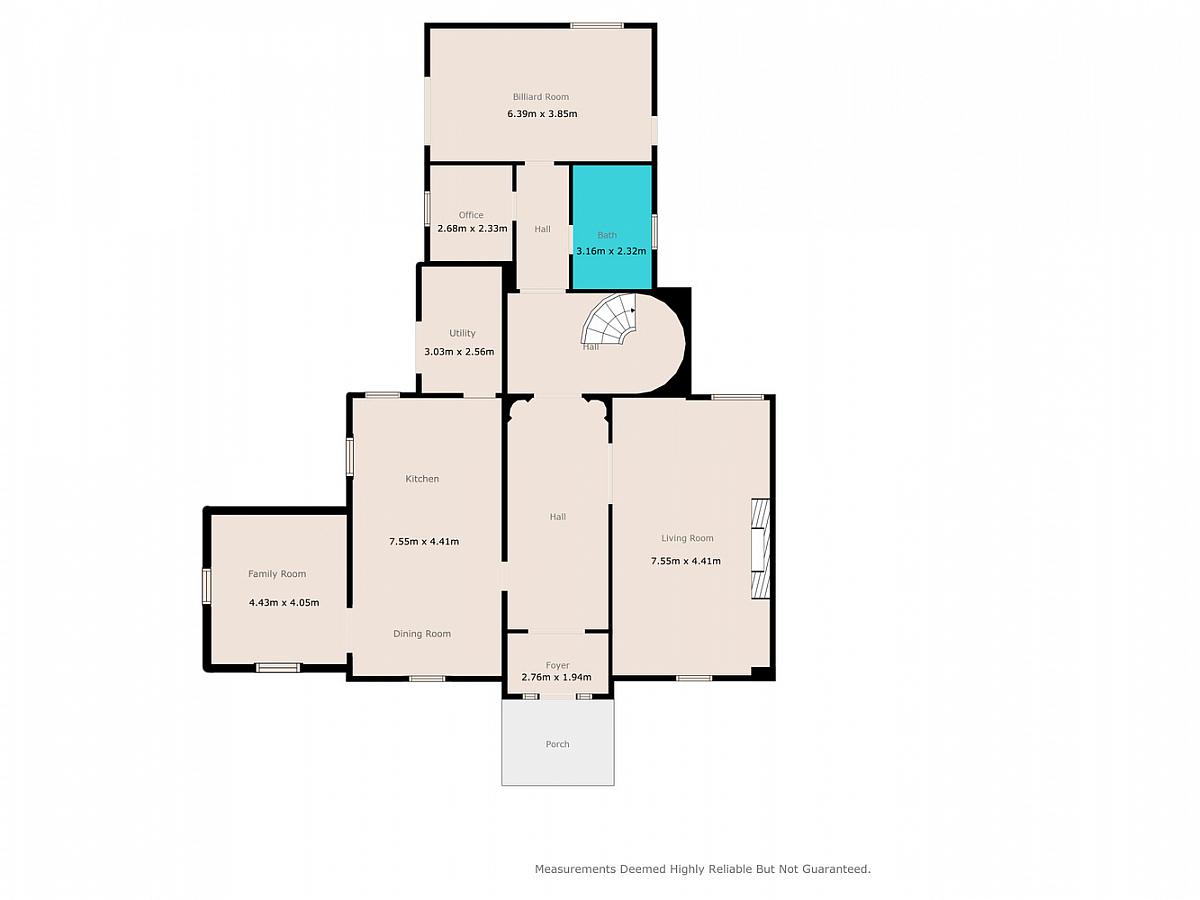 Accessed via marble tread staircase with iron balustrades. Feature glass window.