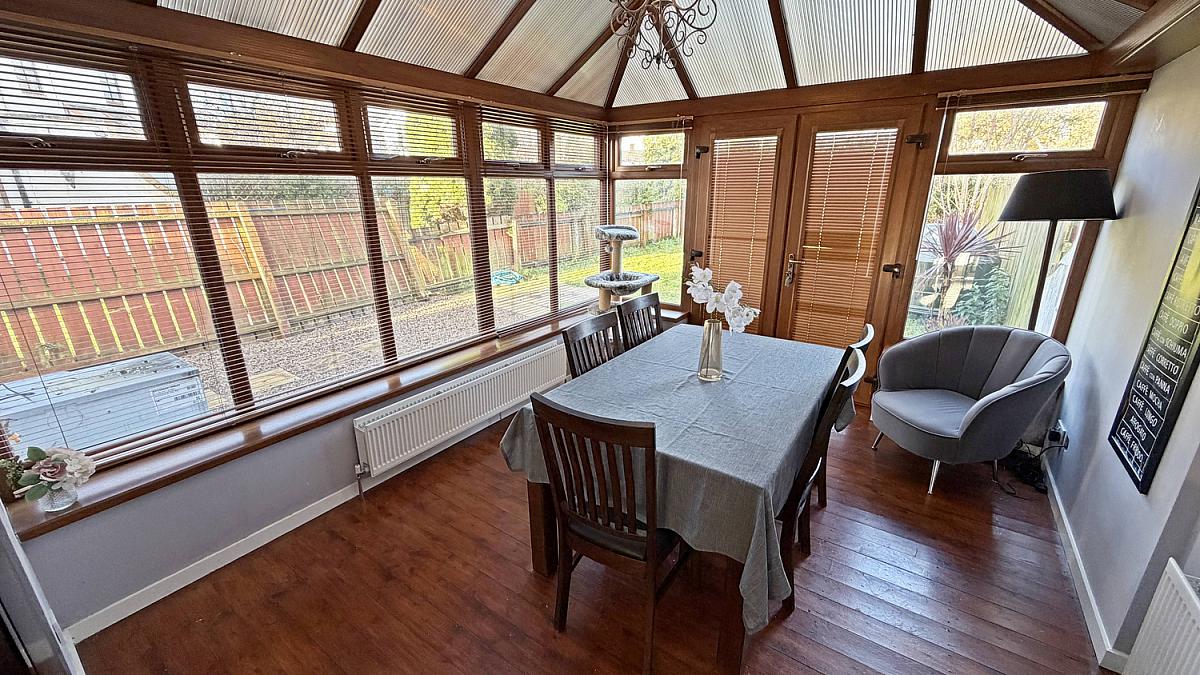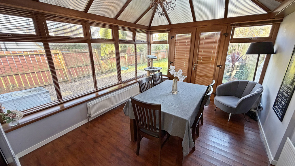 Three bedrooms (1 with ensuite), living room, kitchen/dining room, conservatory, upstairs bathroom