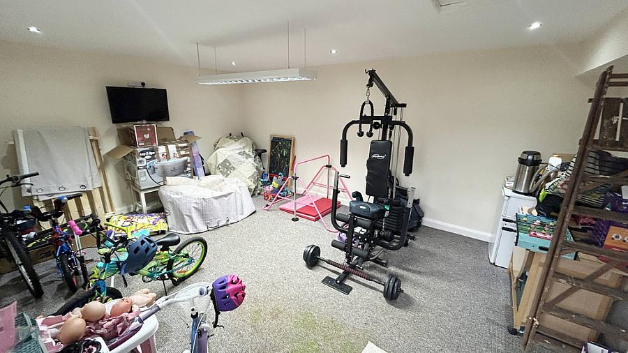 Garage conversion with heating, lighting and power supply - could be used as an office, playroom, games room etc.