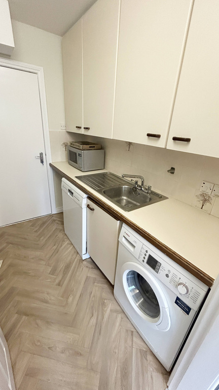 High and low level storage units, stainless steel sink and drainer unit, plumbing for washing machine, plumbing for dishwasher, space for tumble drier. Access to integral garage.