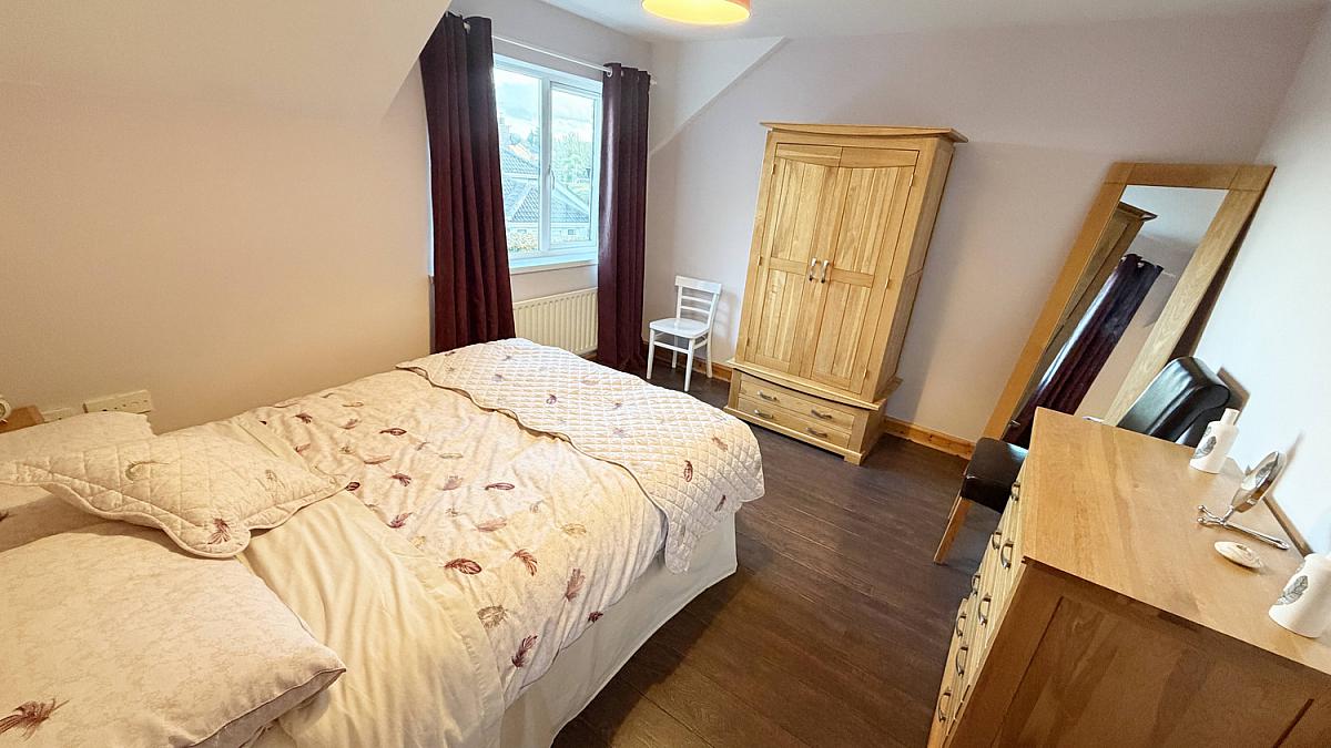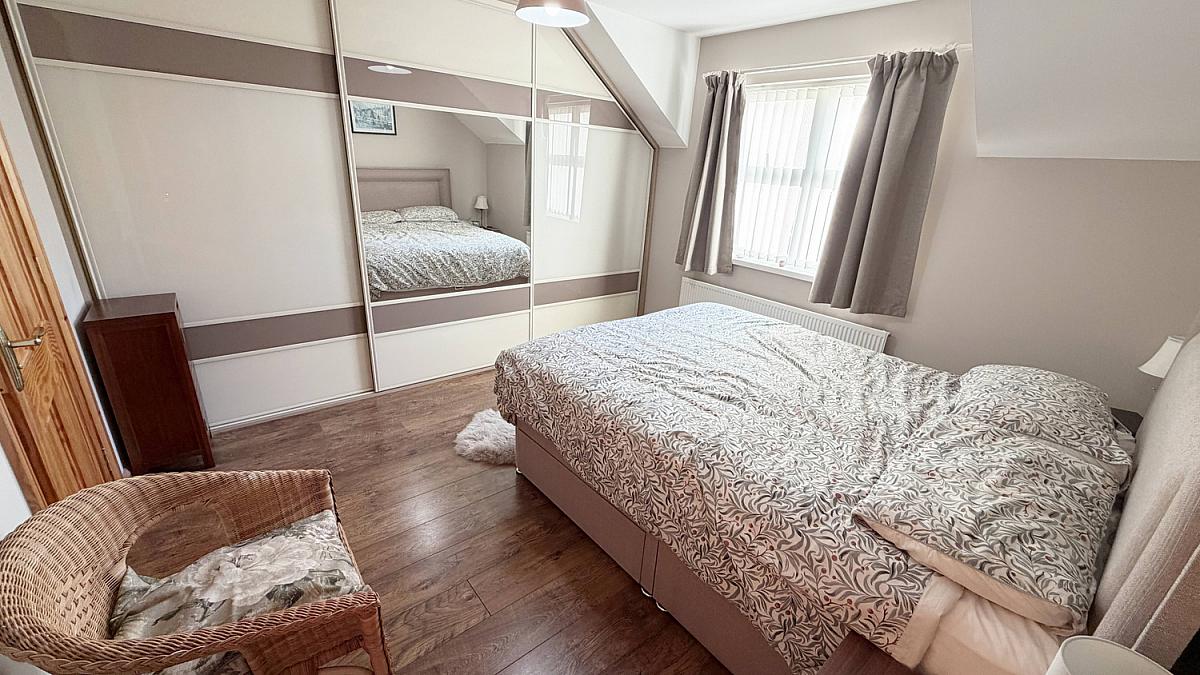 Double room to front with laminate wood floor. Fitted sliderobes.