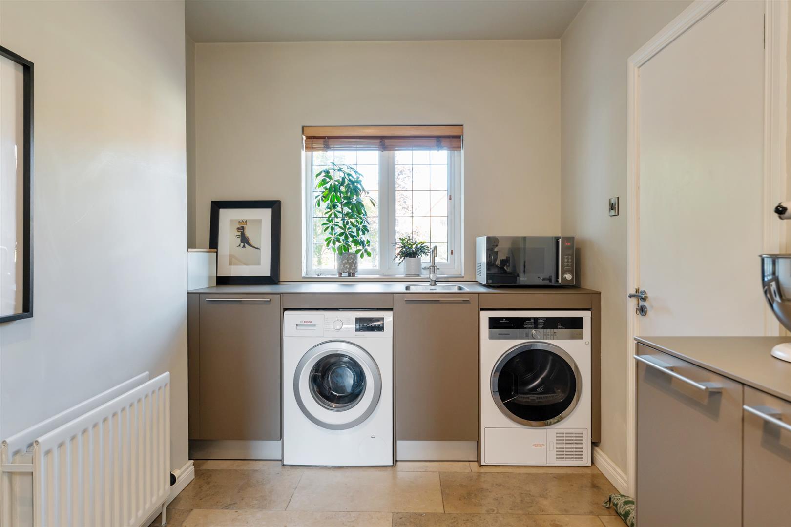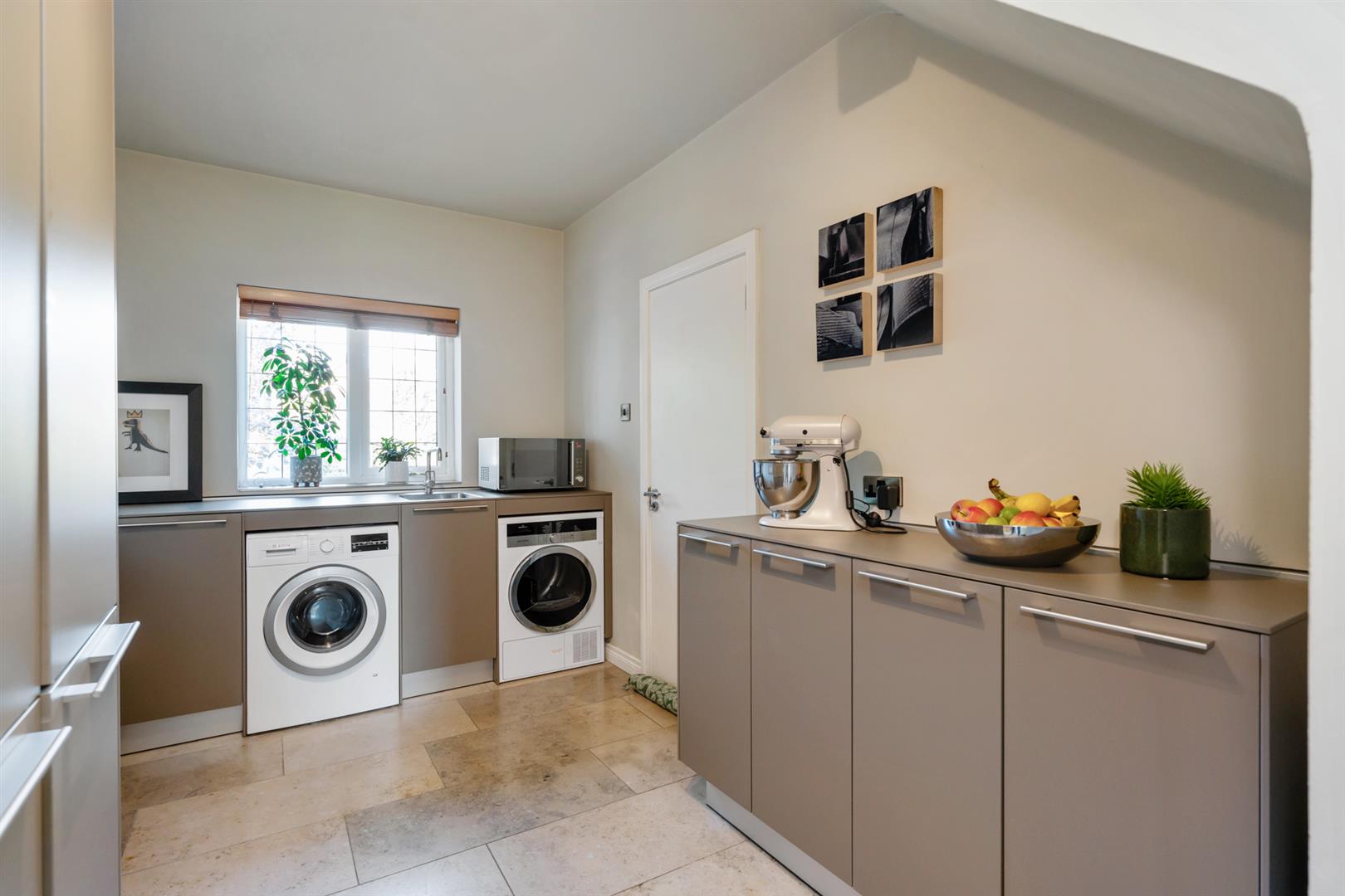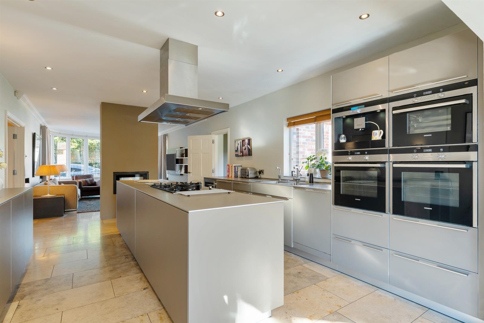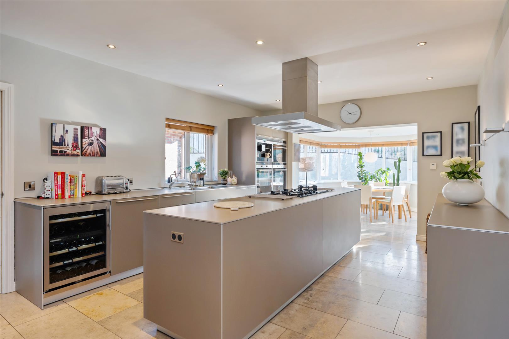 Kitchen: Luxury fitted "bulthaup" kitchen with a range of high and low level units, integrated appliances to include: Siemens steam oven, two Siemens convection ovens, Siemens coffee machine, fridge, dishwasher, large island with gas hob and stainless steel extractor fan and hood, double stainless steel sink with mixer tap and boiling water tap, tiled flooring, underfloor heating, recessed spotlighting, open to sunroom/dining area, open to family room, feature double sided fireplace.