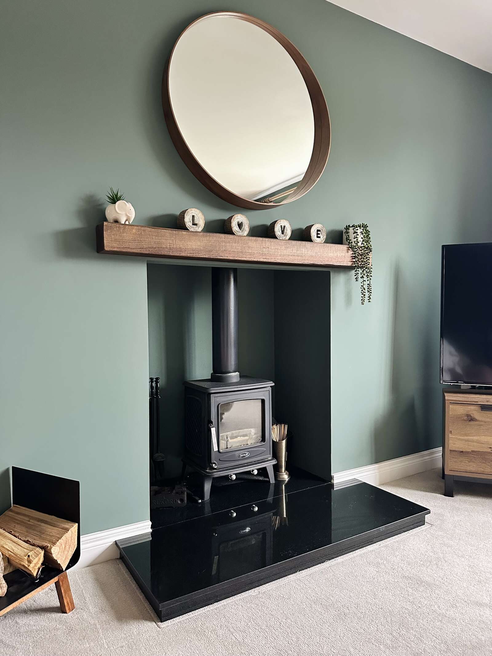 - Lounge with wood burning stove.