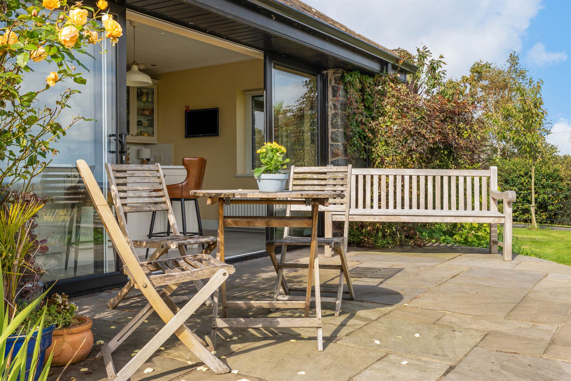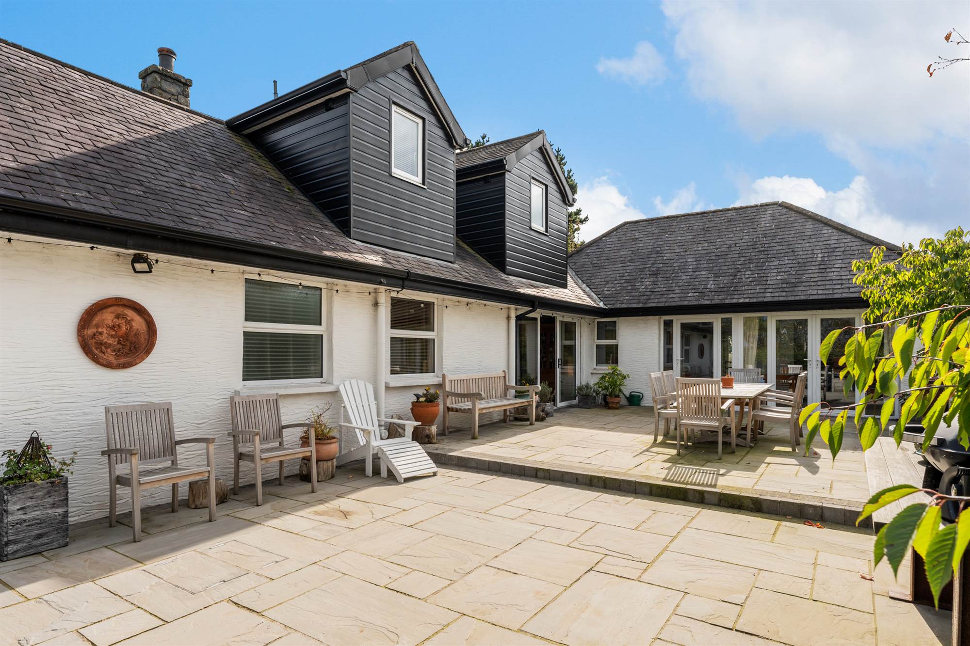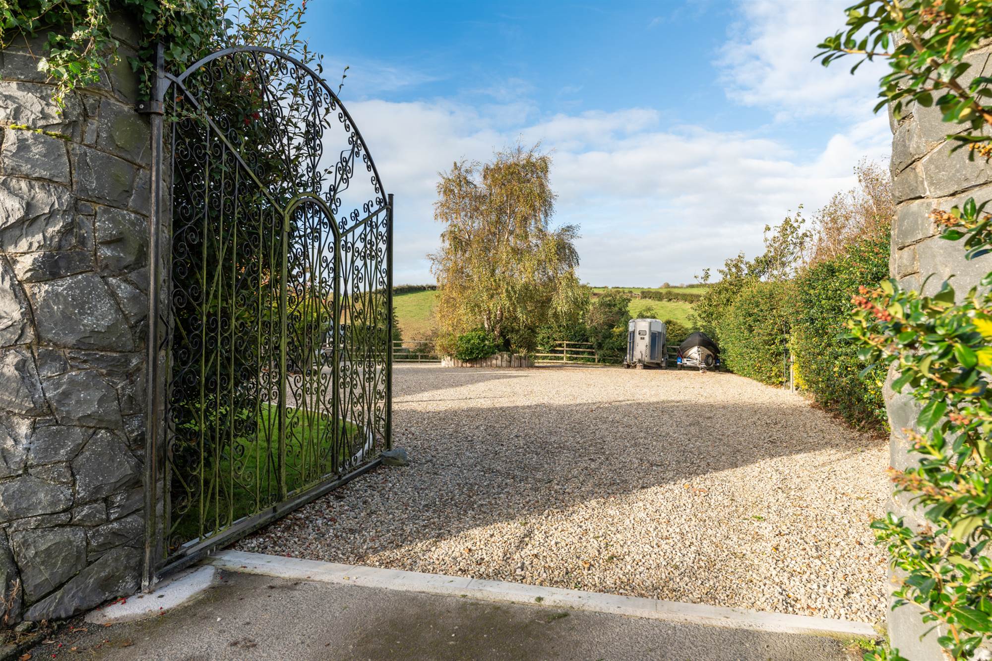 A private tarmac driveway leads to the house and courtyard, enhanced by estate fencing, mature lawns, a side orchard, and a rear enclosed courtyard. Generous gravel parking area with electric car charger. The paved terraces provide excellent spaces for outdoor entertaining, all enjoying the property"s exceptional privacy and tranquil surroundings.
