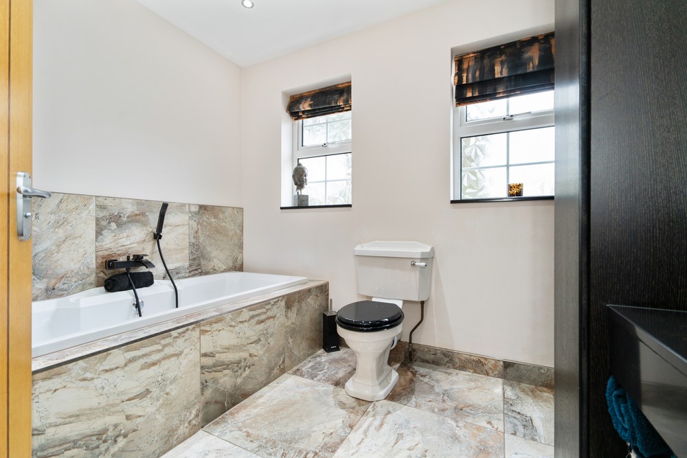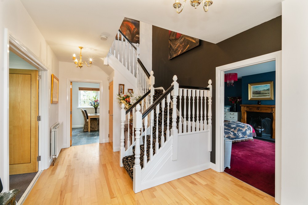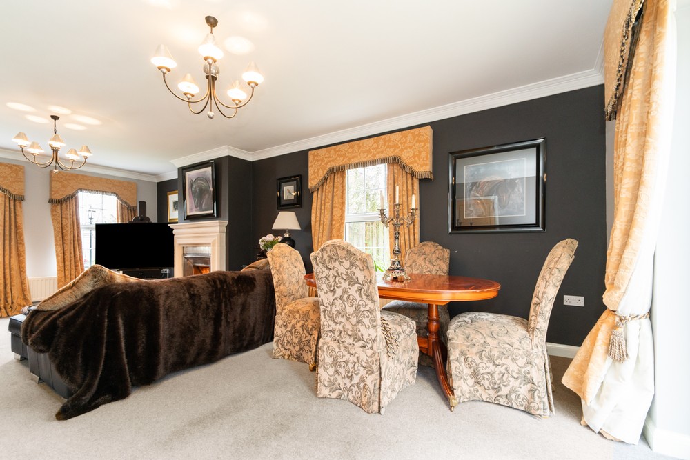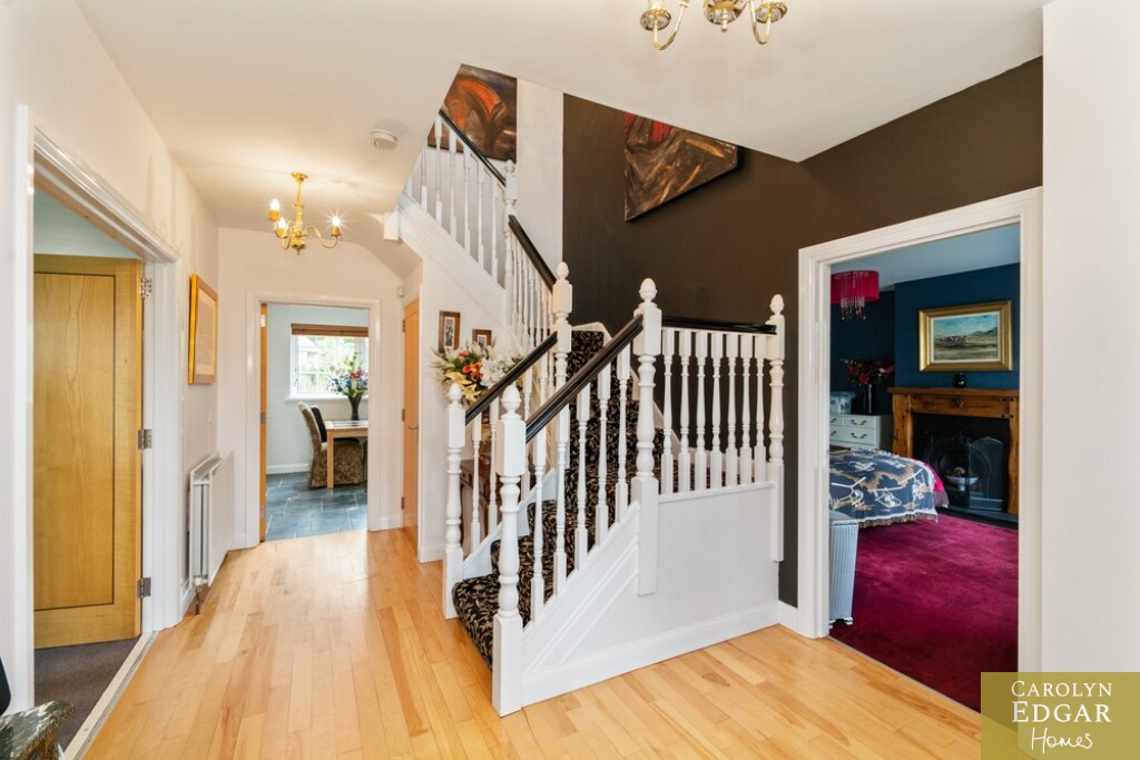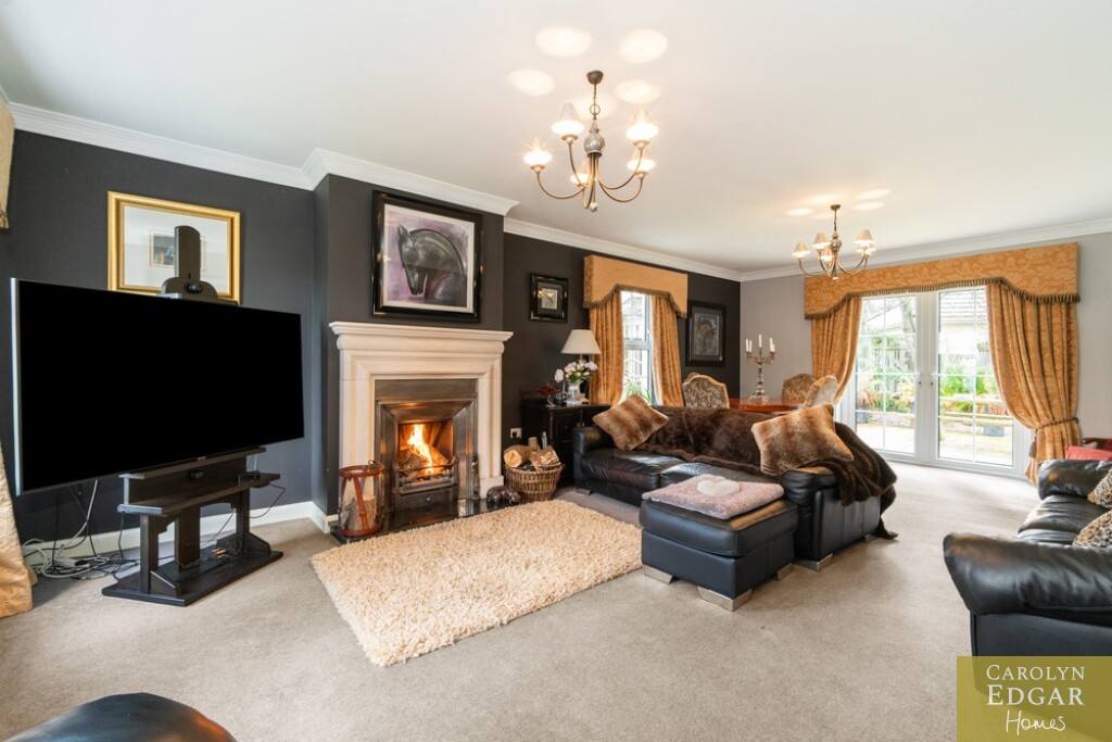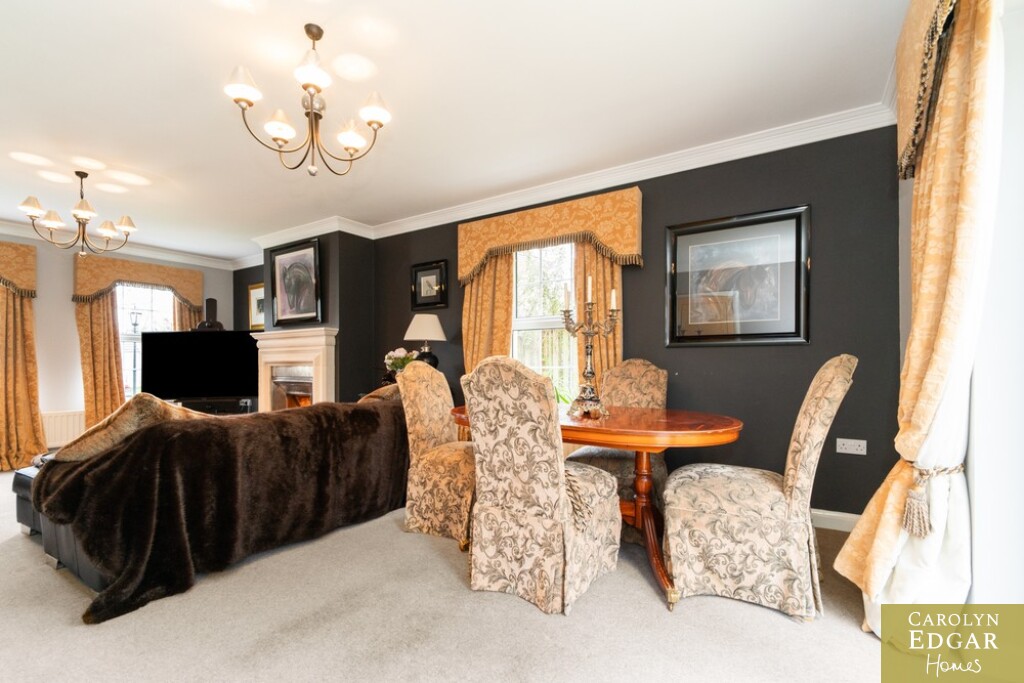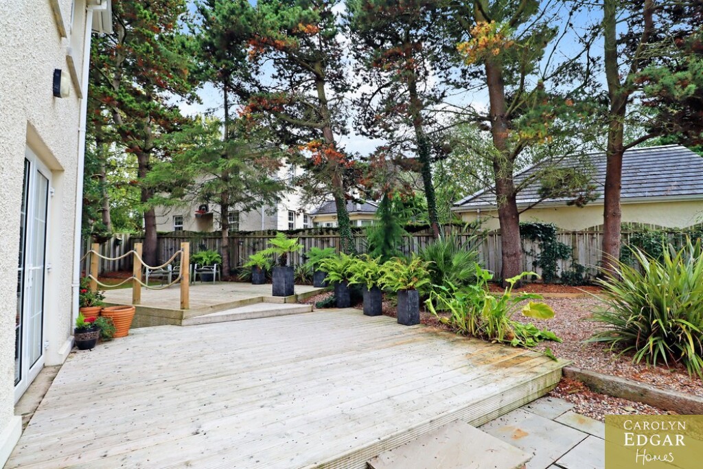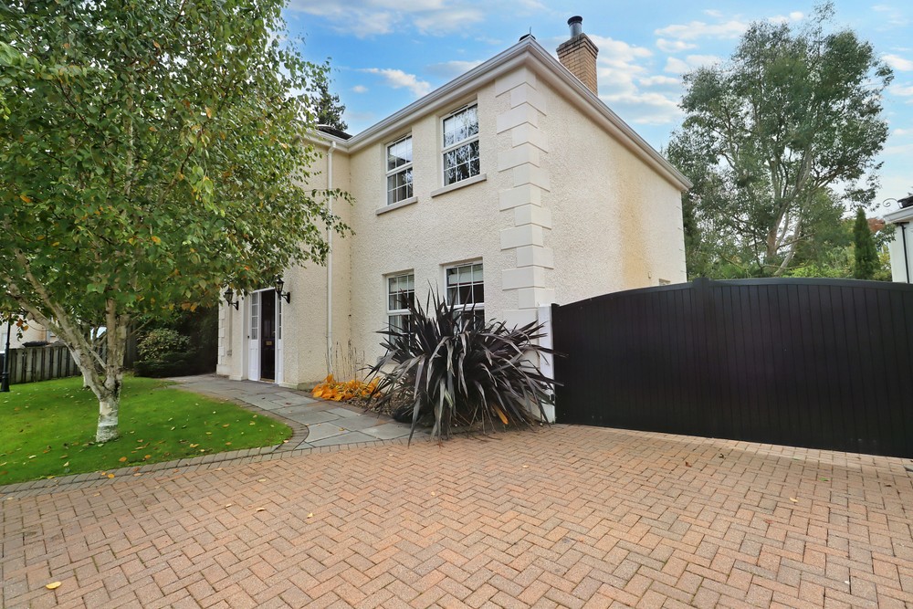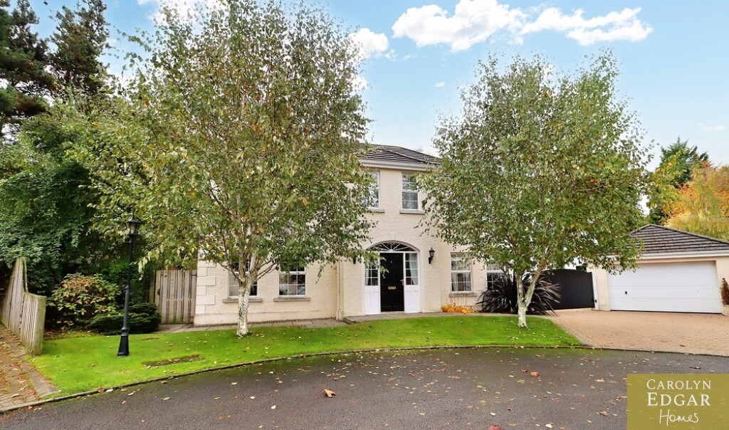 This impressive four-bedroom home is nestled in a quiet and leafy development of only five detached homes and offers a wealth of spacious and stylish accommodation both inside and out. Set on perfectly maintained gardens the property is positioned in a quiet location but is still only minutes away from the bustling town of Comber with its many coffee houses, antique shops and local amenities and will appeal to those looking for a quiet pace of life in an accessible location. Finished to the highest standard throughout this splendid home comprises of welcoming reception hallway, spacious dual aspect lounge open to dining area with feature open fireplace and overlooks the gardens with French doors out to the decked sun terrace, fitted open plan country style kitchen with family /dining area, second reception room with open fireplace, utility room and downstairs WC. On the first floor are four immaculately presented double bedrooms, master with ensuite and dressing room and luxury family bathroom with bespoke walk-in shower. Externally the property has large south facing gardens with mature trees and shrubs and raised sun terrace area, perfect take in your lush and glorious surroundings, driveway with electric gates providing ample car parking for several cars, boat, or horse box and large garage.