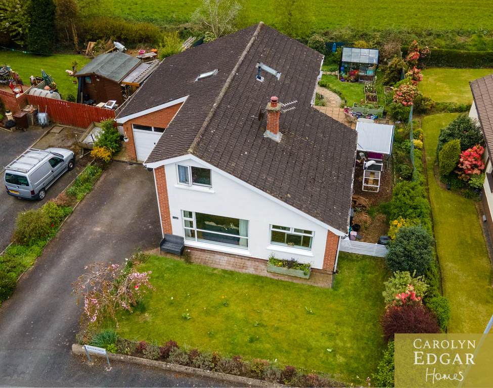 This deceptively spacious and bright detached property is set in a sought after but quiet residential area conveniently located only minutes away from the bustling town of Comber with its eclectic mix of coffee houses, antique shops, local amenities, and popular schools and will appeal to those looking for a quiet pace of life in an accessible location. Set in a quiet cul de sac on a large corner site with wonderful south facing rear gardens, the property offers spacious and flexible living accommodation to suit any modern family needs and will appeal to a wide range of buyers from those with an expanding family or maybe with a walking disability to those accommodating elderly relatives, with a possible three bedrooms and bathroom on the ground floor. Internally, on the ground floor, the property has a bright entrance hallway, spacious lounge with double doors to the dining room, leading out to the modern fitted kitchen with fabulous views over the sunny cottage style rear gardens, three bedrooms, two of which are doubles and modern family bathroom. Upstairs there are a further two large double bedrooms and family bathroom. Outside to the front are well maintained gardens, laid in lawn, mature trees and shrubs and large tarmacked driveway with ample parking for several cars as well as access to garage and extensive and perfectly presented private enclosed sunny rear gardens with wonderful patio area and delightful viewsjust the perfect spot to unwind.