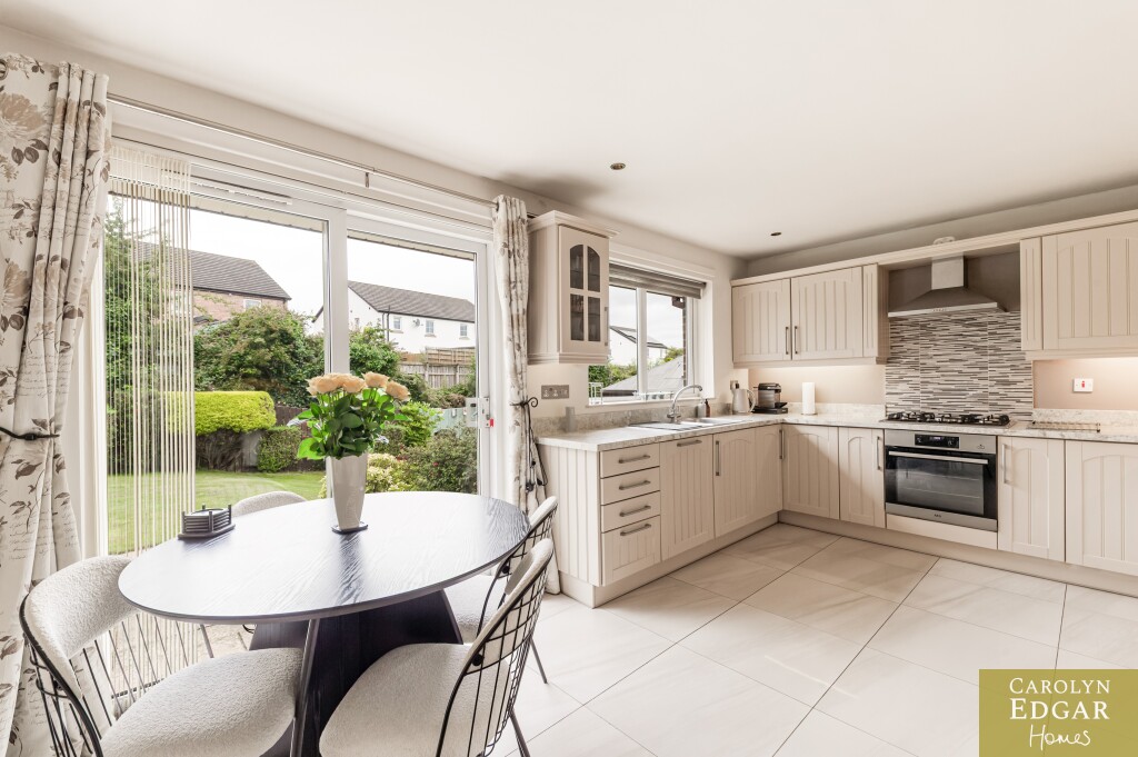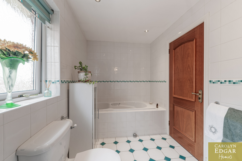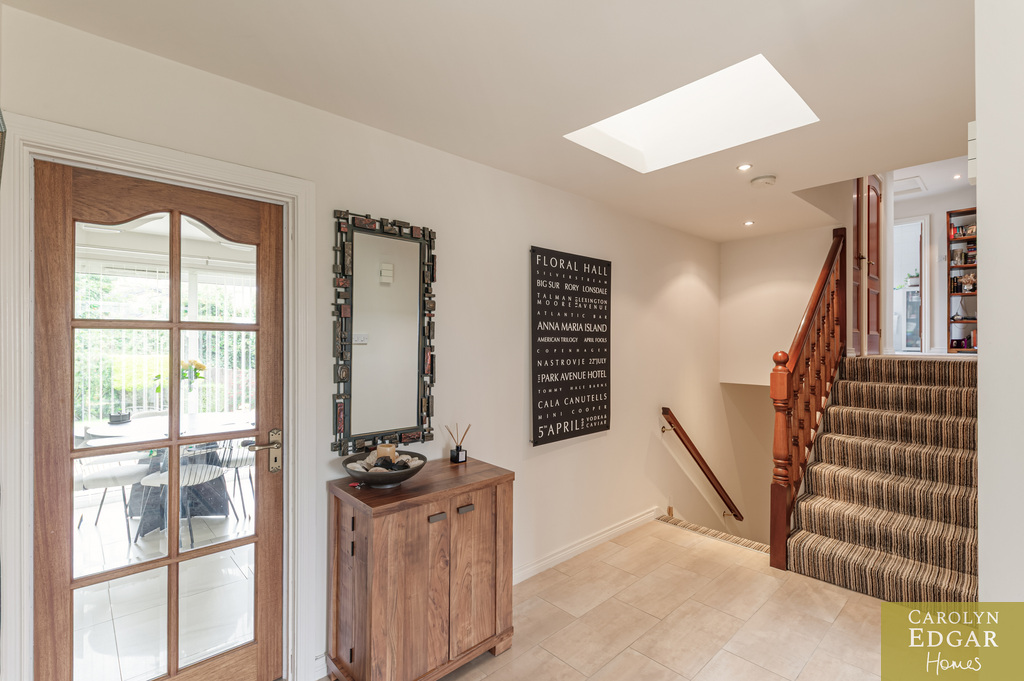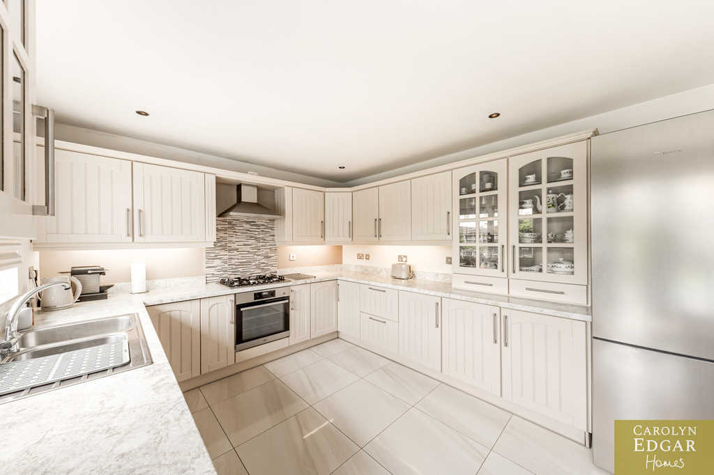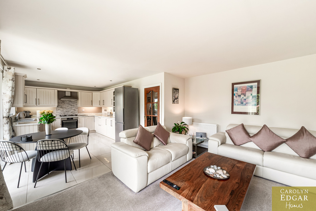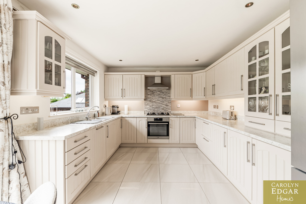 Neutrally decorated throughout and split over three floors the property boasts a spacious and flexible layout providing versatile living accommodation for any growing family needs with the adaptability of four or five bedroom or extra reception rooms to suit whatever your requirements. Internally the property comprises of bright entrance hallway, extensive lounge with bay window and feature open fireplace, adjacent to this is a second reception room that currently serves as a formal dining area, ideal for hosting family gatherings and special occasions or possible fifth double bedroom if required. The heart of the home is undoubtedly the large, open plan modern fitted kitchen with an ample range of built in appliances leading to the spacious but cozy snug with fireplace that adds a sense of warmth and character, and patio doors overlooking the well maintained sunny rear gardens. There are three further double bedrooms all with built in robes on the next split upper level, master with ensuite and large family bathroom that caters to the remaining bedrooms. The split level to the lower floor has a further double bedroom, currently being used as a study, this floor also includes a utility room, additional W.C and convenient access to the double garage. Outside there are well maintained wrap around gardens to the front with brick paviour driveway providing ample off-street parking for several cars and access to the double garage. The expansive private enclosed gardens complete with well-kept lawns, an array of mature trees and shrubs and decked sun terrace are designed for relaxation and entertainment, making this the perfect home with a great balance of both great outdoor and indoor living space with the ideal blend of comfort, style, and convenience for family living.